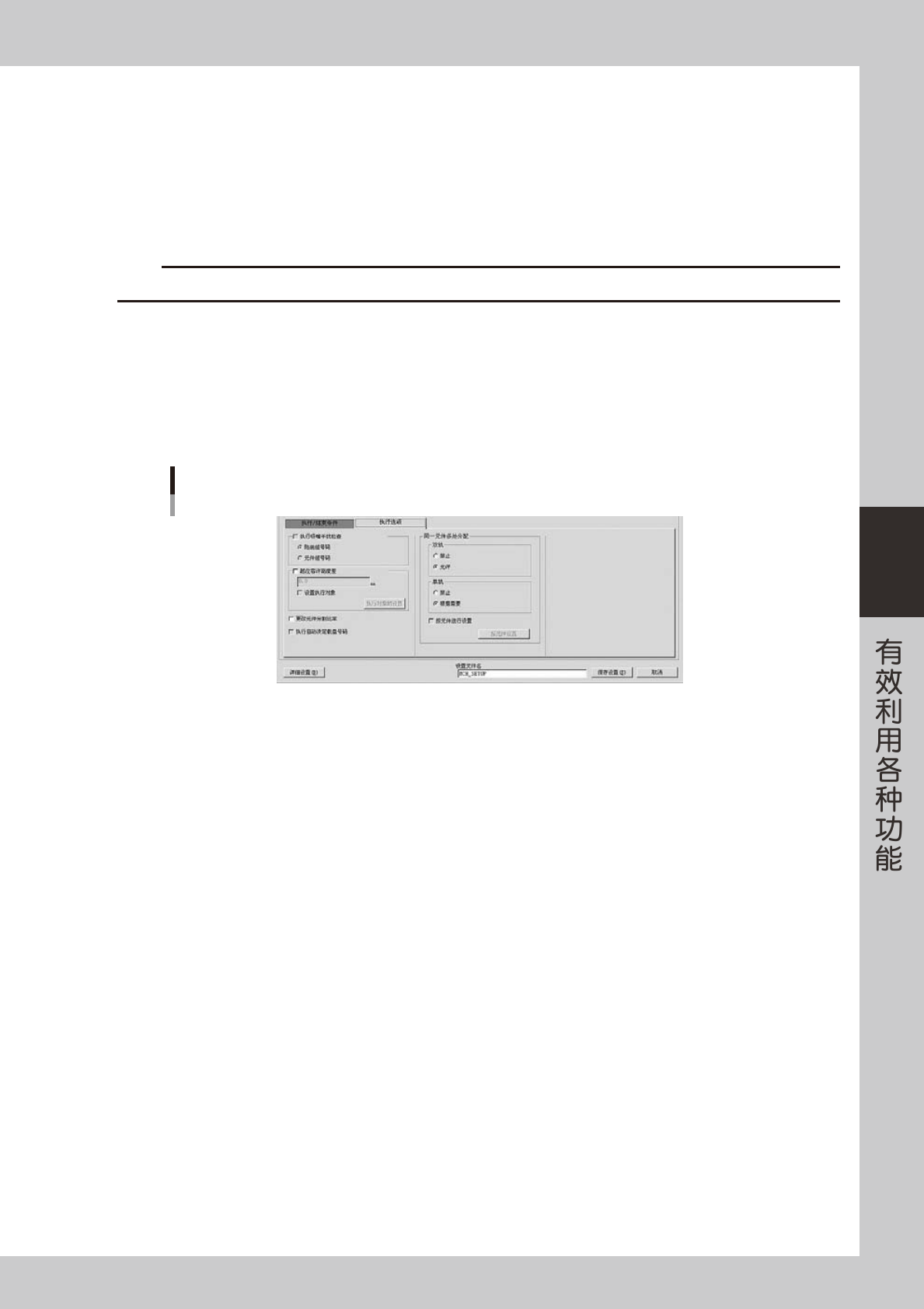 打开“执行选项”选项卡画面,设置需要的条件。