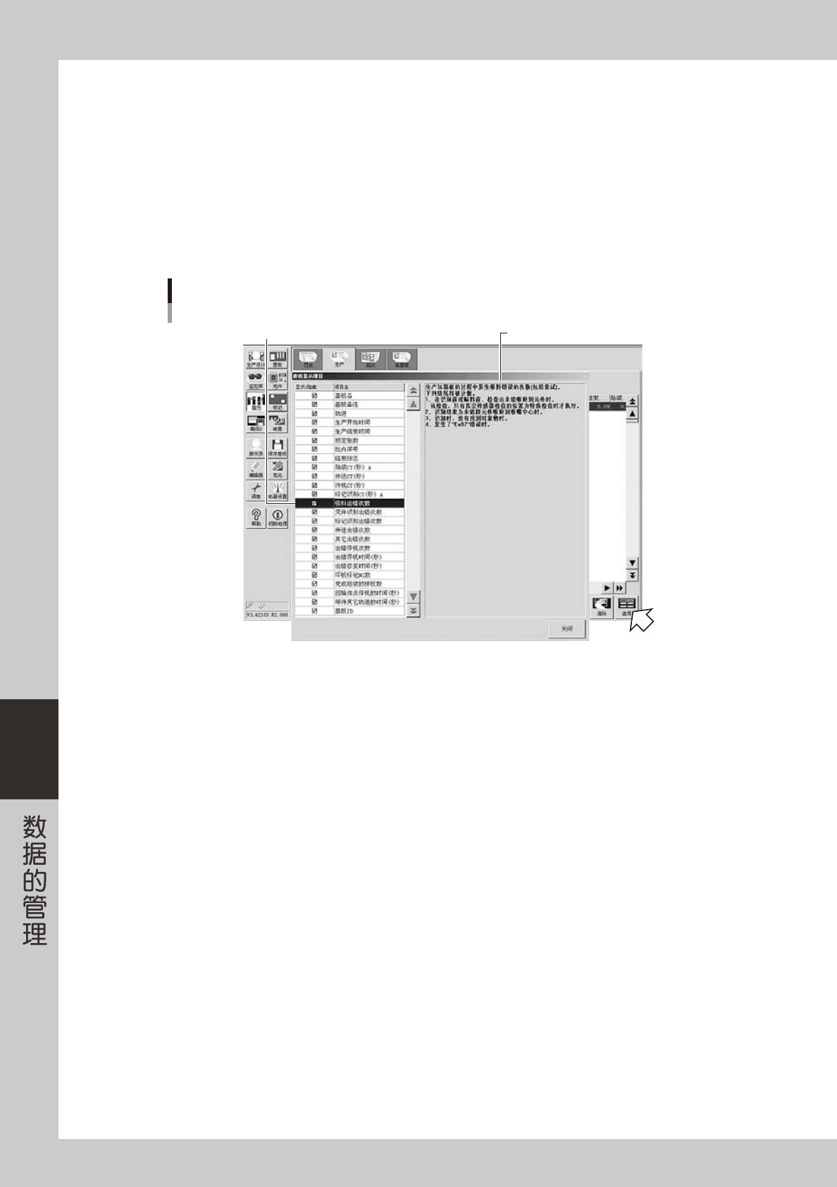 画面下侧显示吸料出错率。