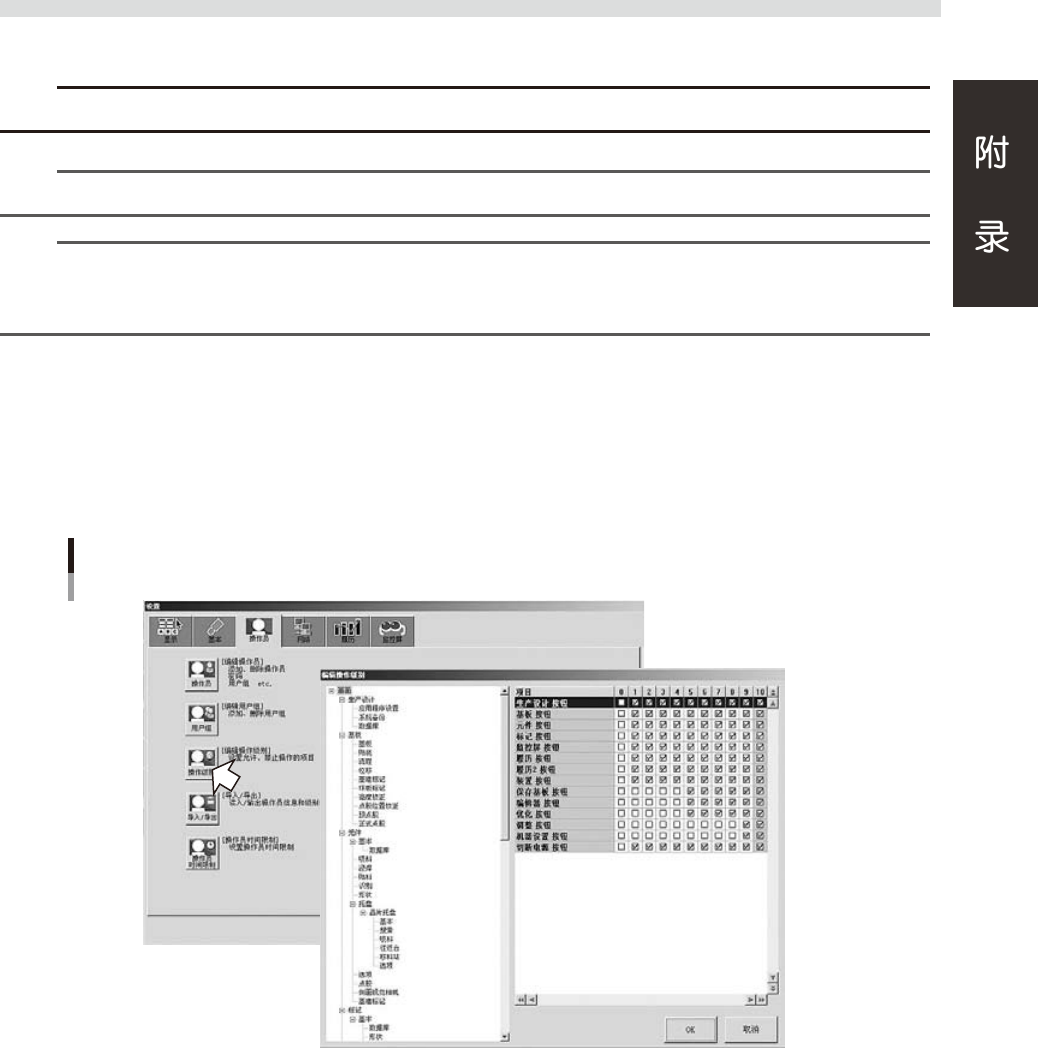 A-11 A2.4 操作级别的编辑 下面,介绍设置各项作业的操作级别的方法。 c 注意 无法更改操作级别为 0 与操作级别为 10 的操作项目。 n 要点 只有管理人员 ( 操作级别为 10) 才有权限编辑操作级别。 参考 · 各操作级别的设置分别独立。例如,在操作级别 1 中设置的条件不会自动设置到操作级别 2 中。在操作级别 1 中设置为可操作 的按钮在操作级别 2 中可设置为不可操作,但在操作级别 3 中又可设置为可操作…