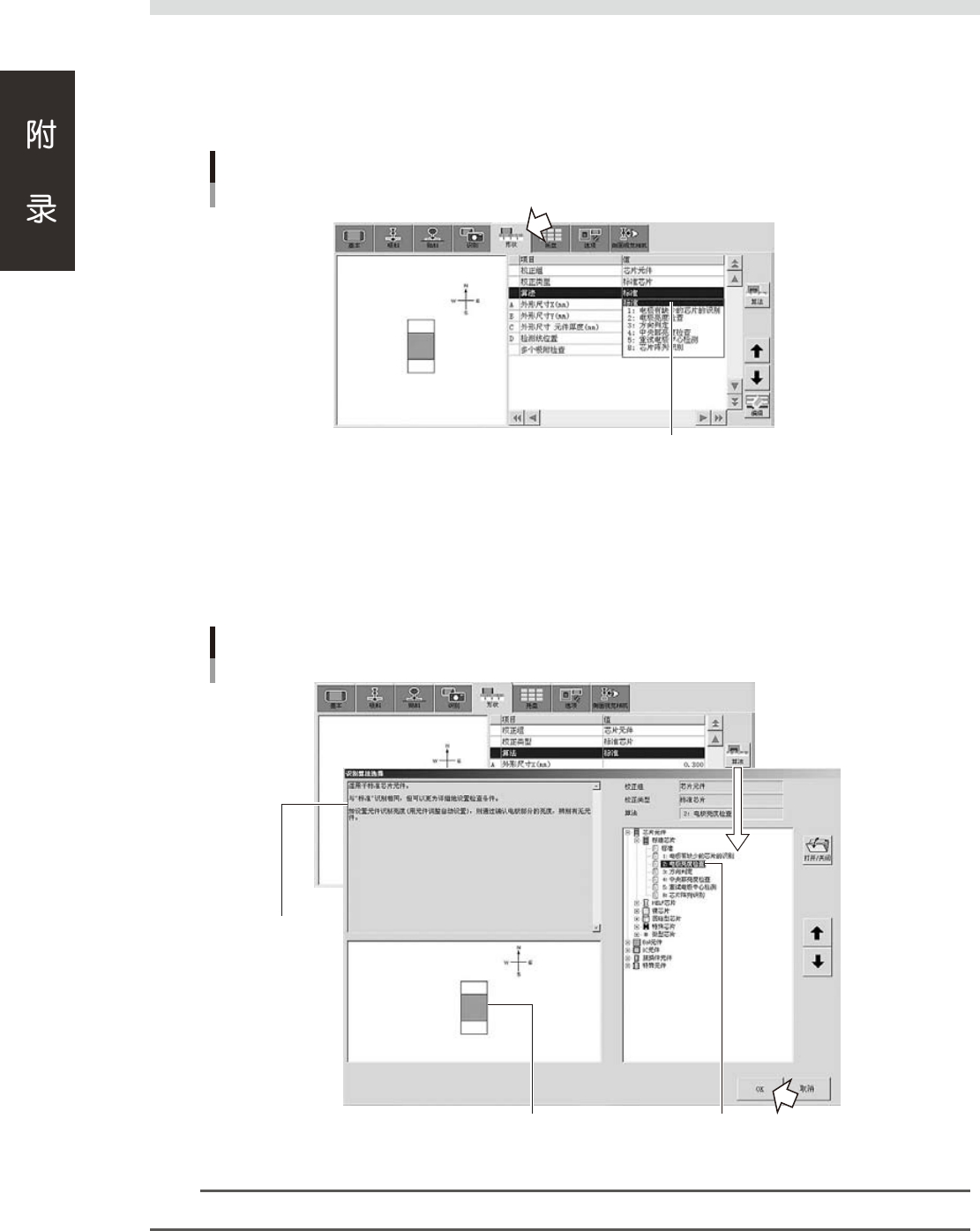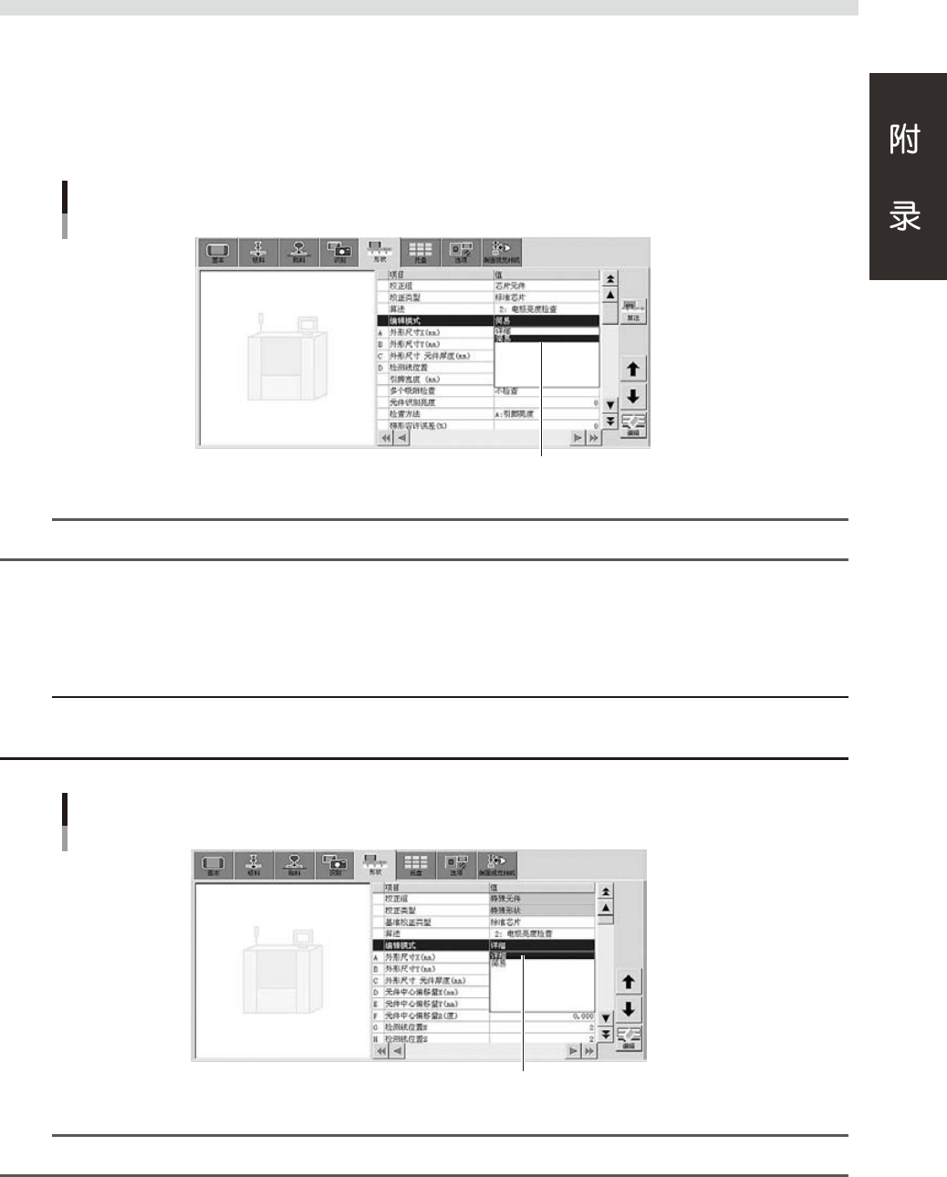 按“形状”画面的 [ 算法 ] 按钮,可以打开“识别算法选择”画面。
