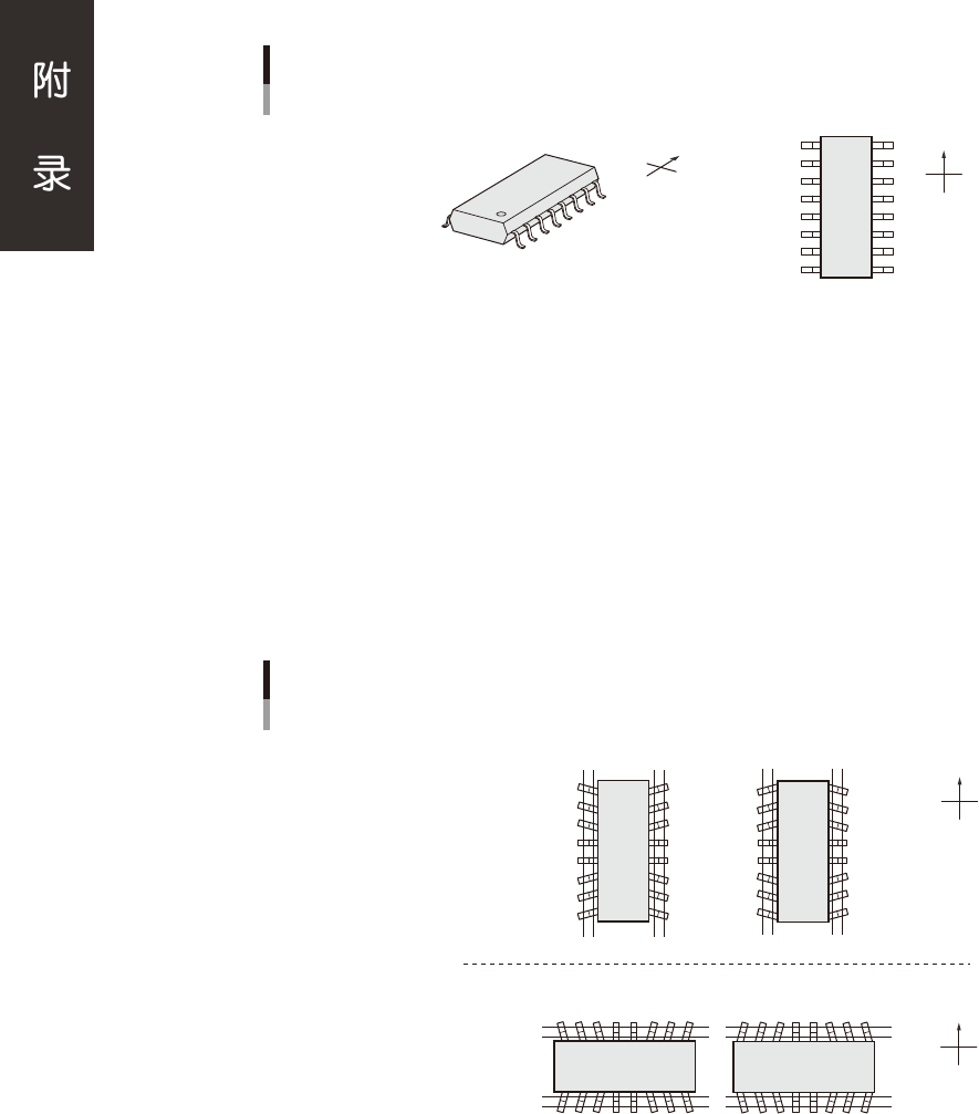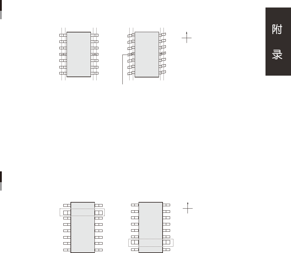 适用于判定带极性引脚的 SOP 元件的方向。通过引脚列中的宽引脚所在位置,判定元件的方向。