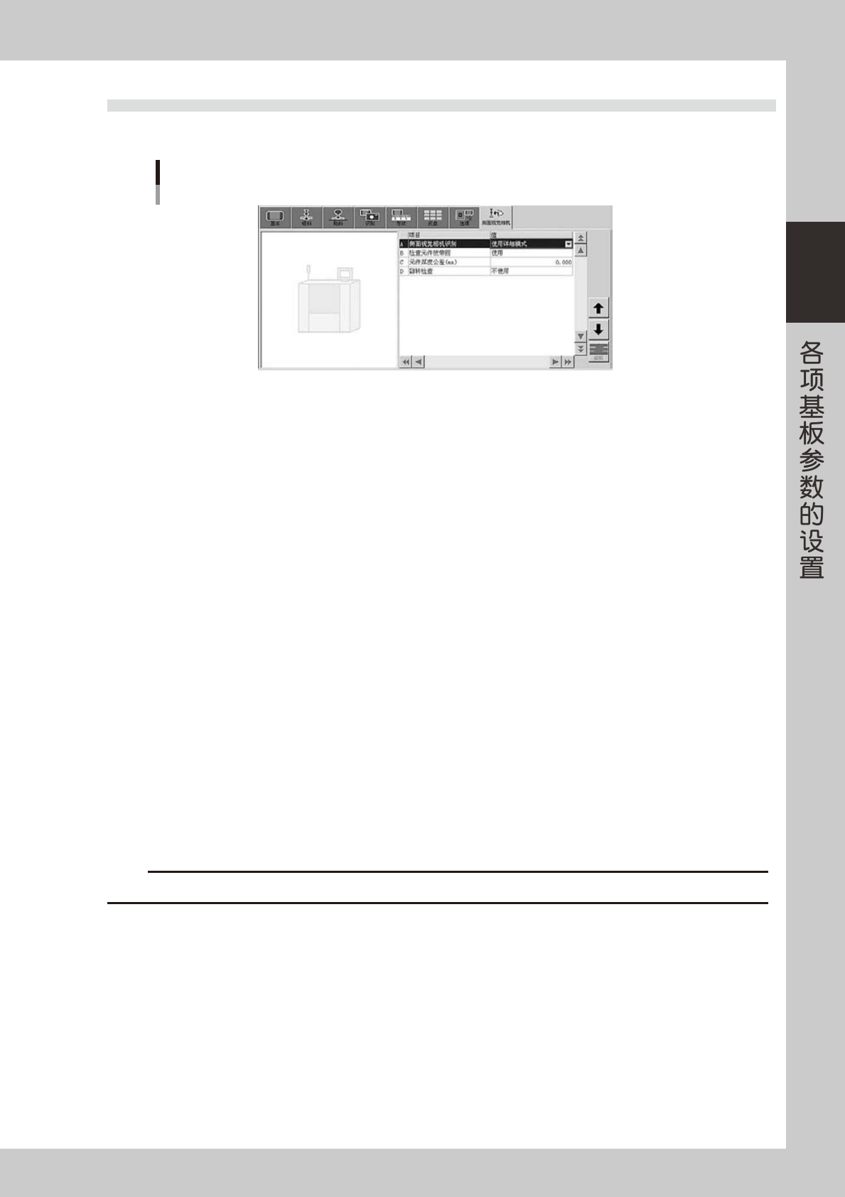 侧面视觉相机参数,只有配备了侧面视觉功能或侧面视觉相机的贴片机才会显示。