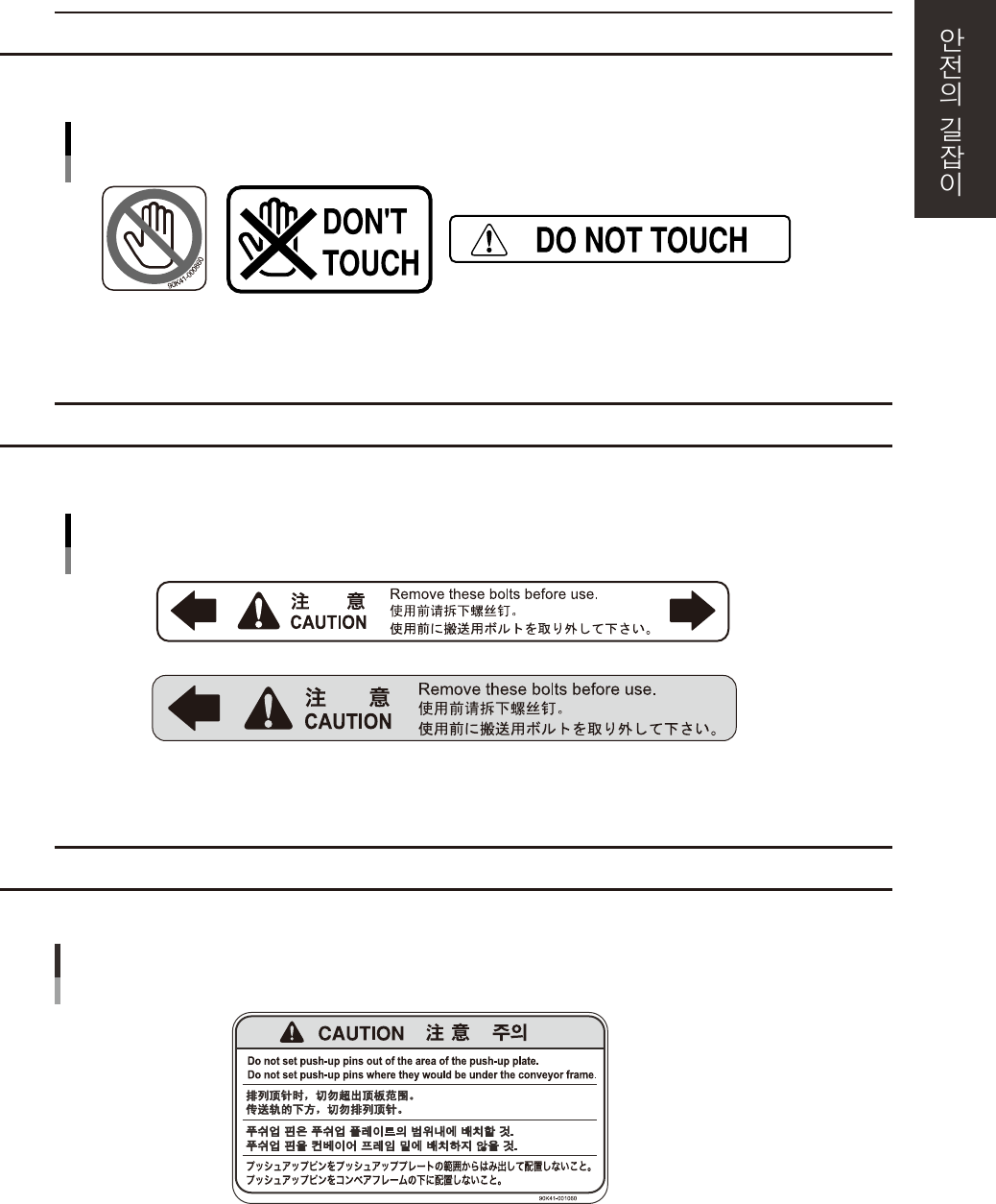 푸쉬업핀의배치에주의해주십시오 .소정의위치에서벗어나서배치하면기계가파손될우려가있습니다 .