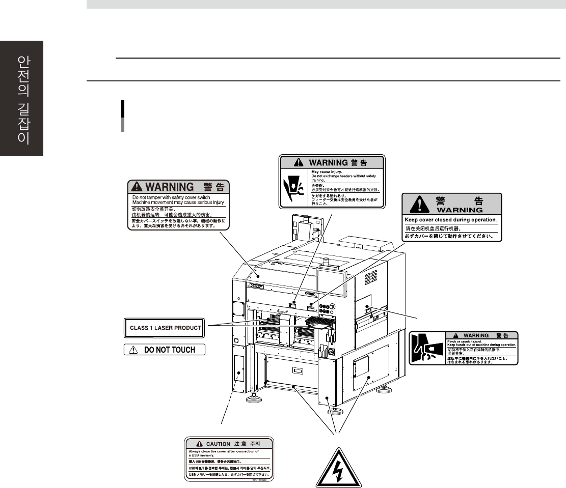 장비를 정확하고 안전하게 사용하기 위해서 , 본체 각부에 다음과 같이 경고표시 라벨이 부착되어 있습니다 .
