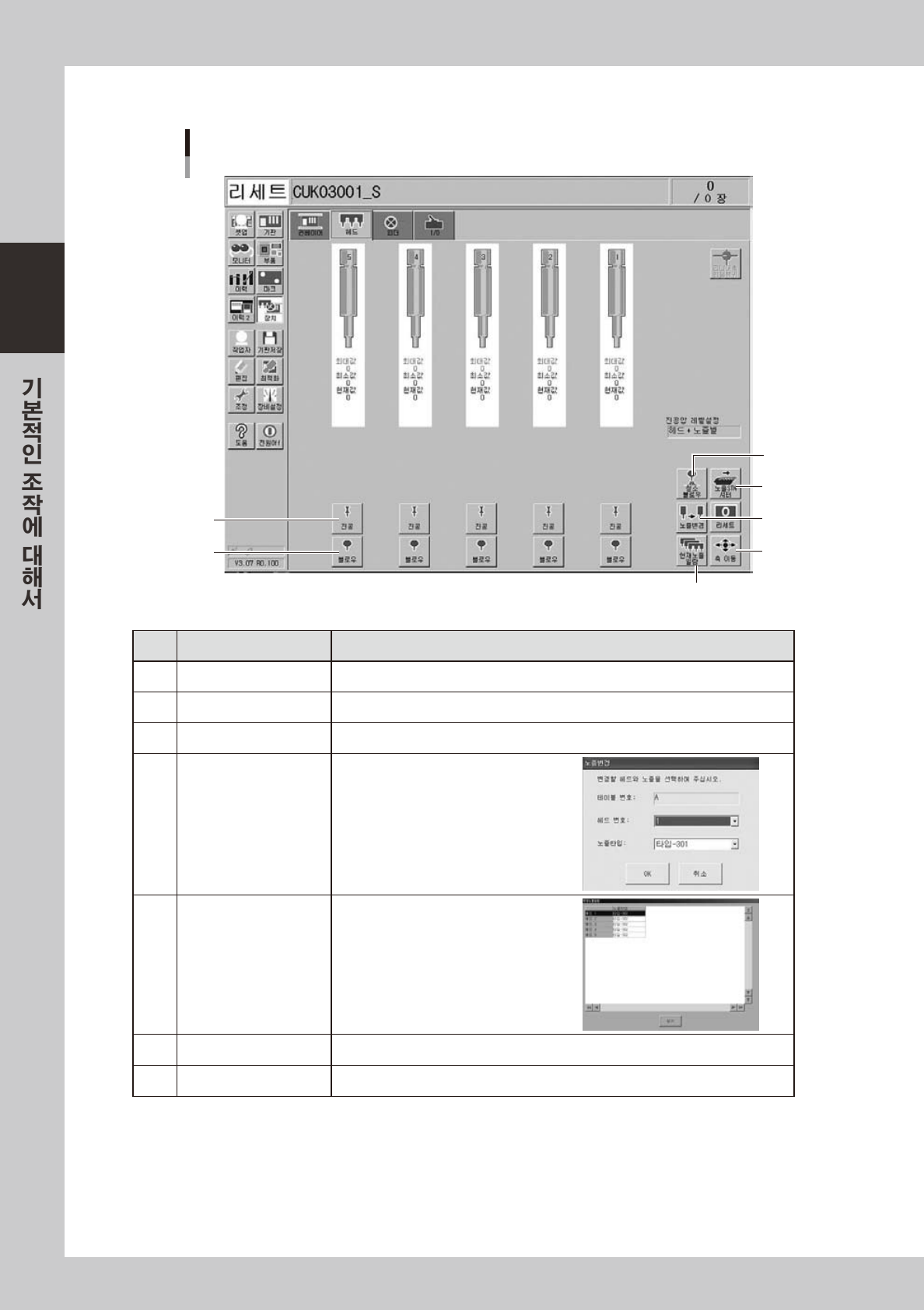 「노즐변경」대화창이표시되면 ,헤드및노
