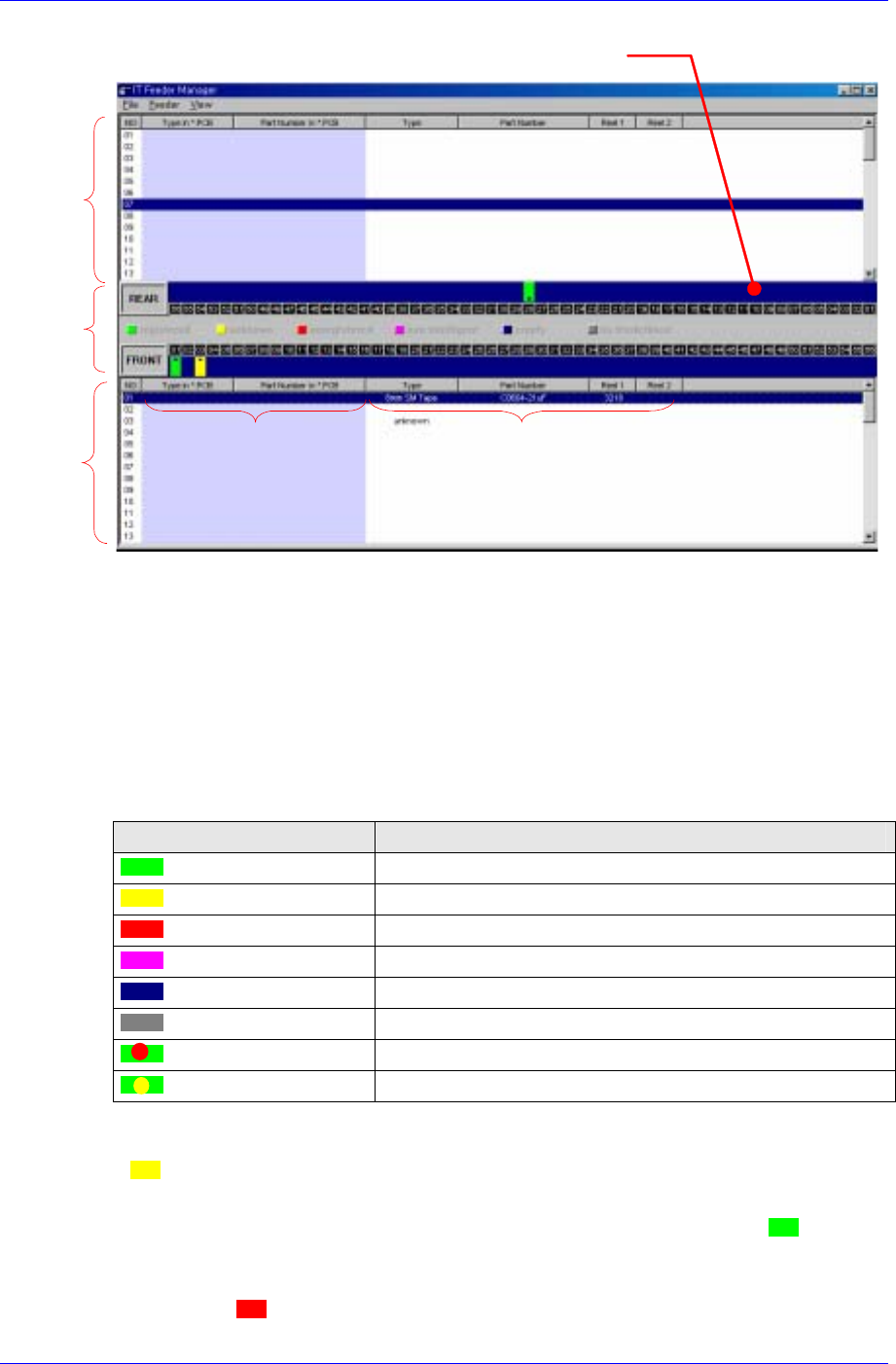 Feeder Status, the front feeder base is displayed in the upper part of the screen and the