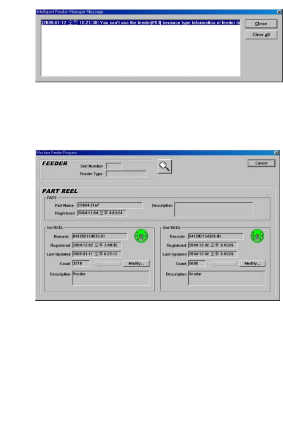 setup (refer to Figure. 1-2), when the reel barcode is inputted through barcode reader or