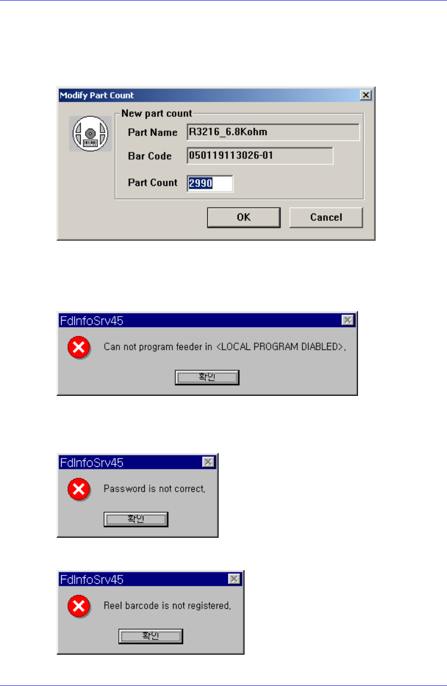 setup (refer to Figure. 1-2), when the reel barcode is inputted through barcode reader or