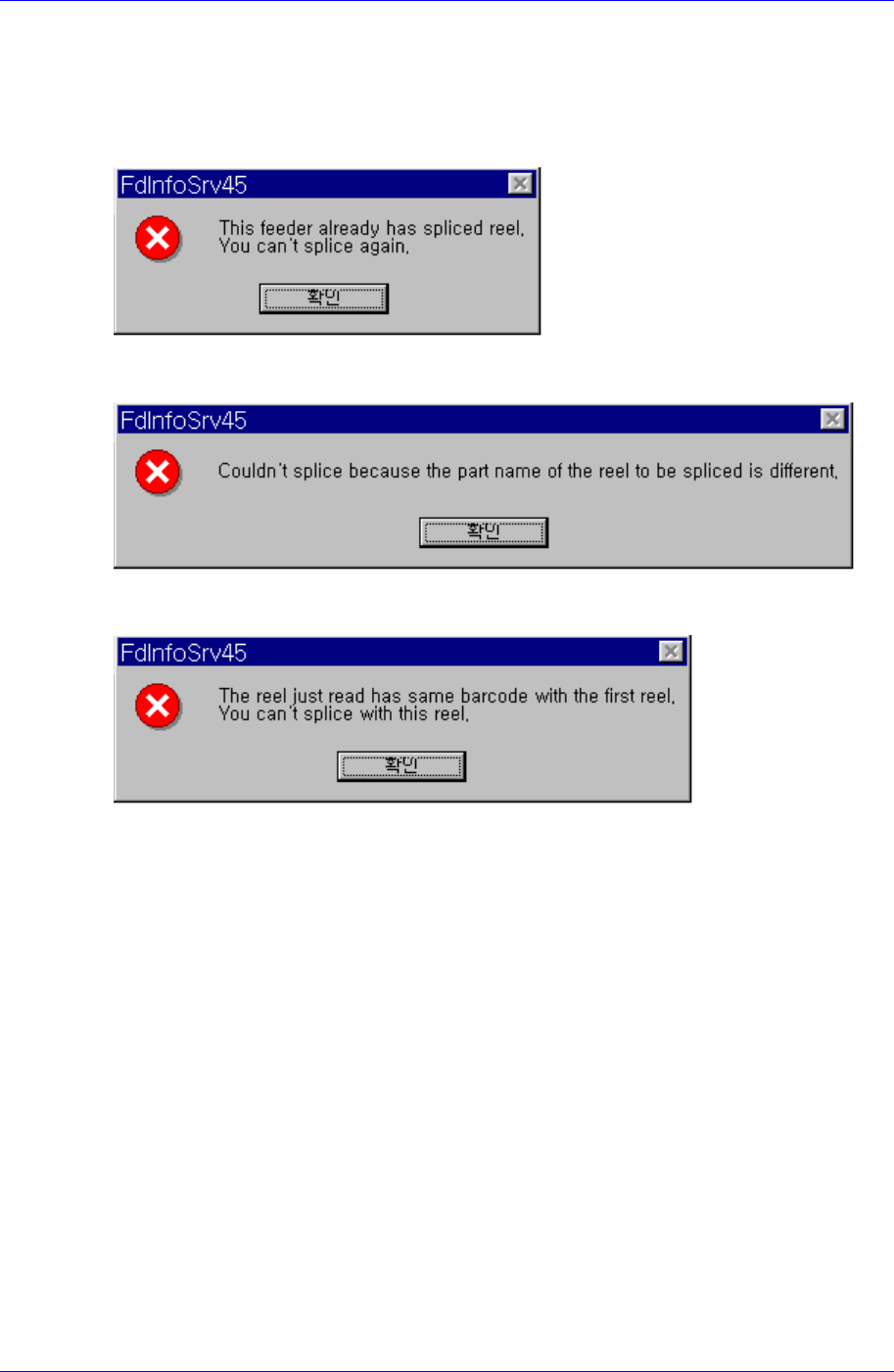 When splicing the selected feeder, if it has been already spliced, the message as above is