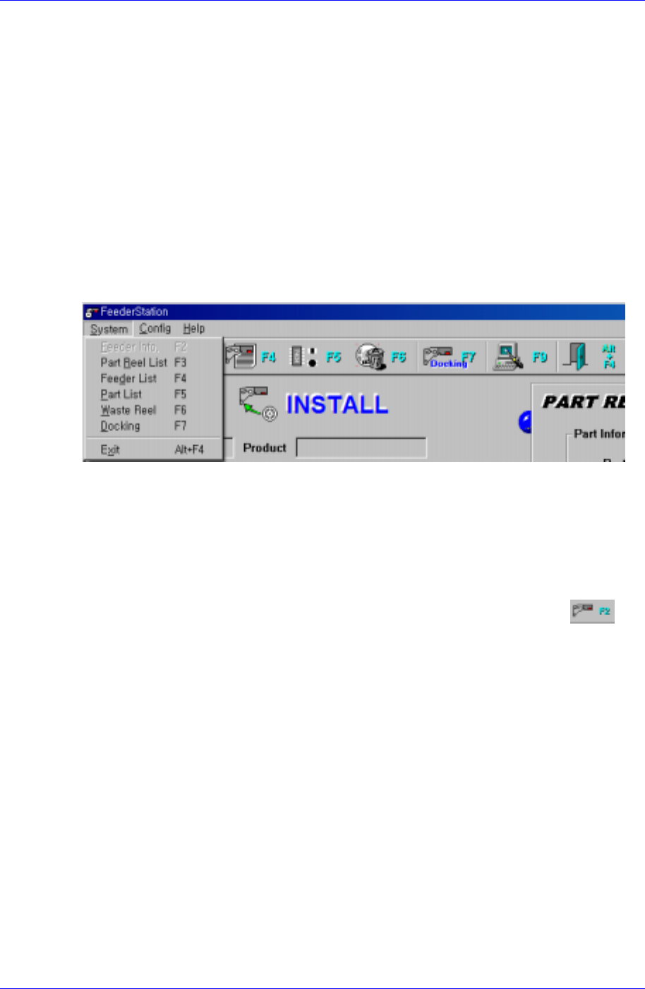 The System menu consists 6 submenus; Feeder Info, Part Reel List, Feeder List, Part List,