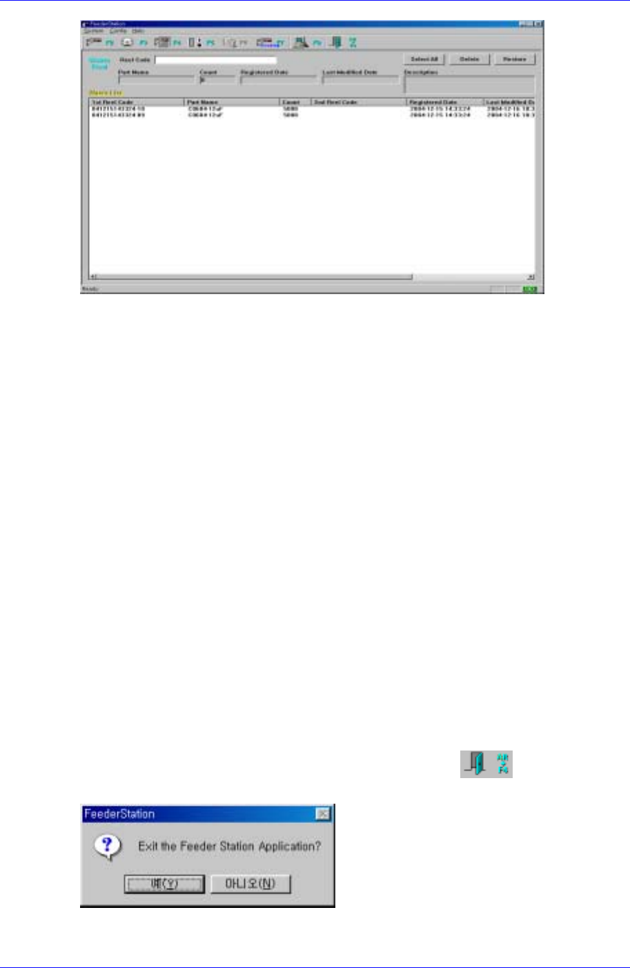 Feeder S tation Figur e 3-16. W aste Reel scr een Description of the screen When a Reel Code is entered, the Reel to delete is displayed in the list. Use the Delete or Restore button to delete or restore. Reel Code i…