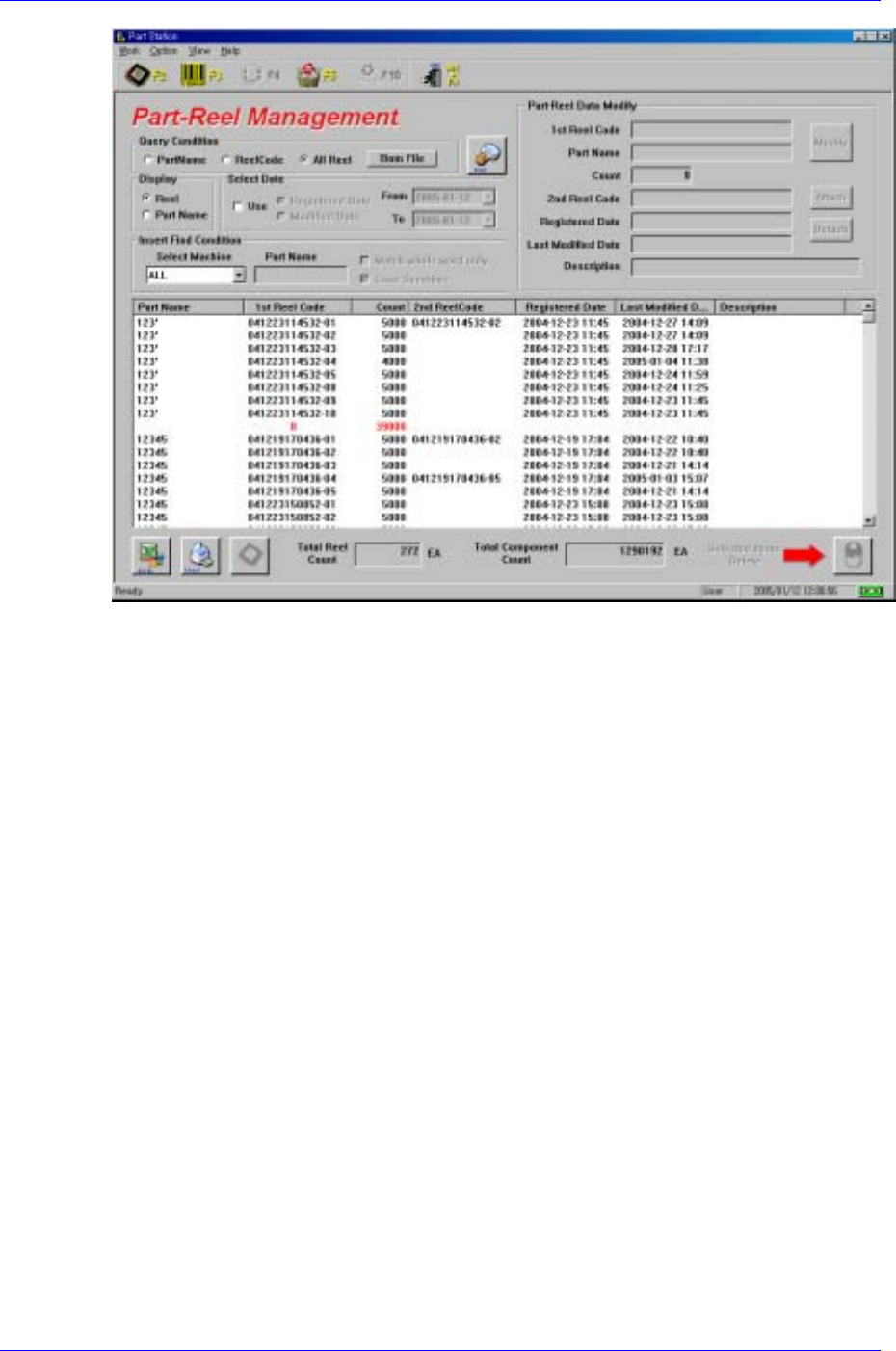 Part Reel Management allows the user to search registered Reel data with various