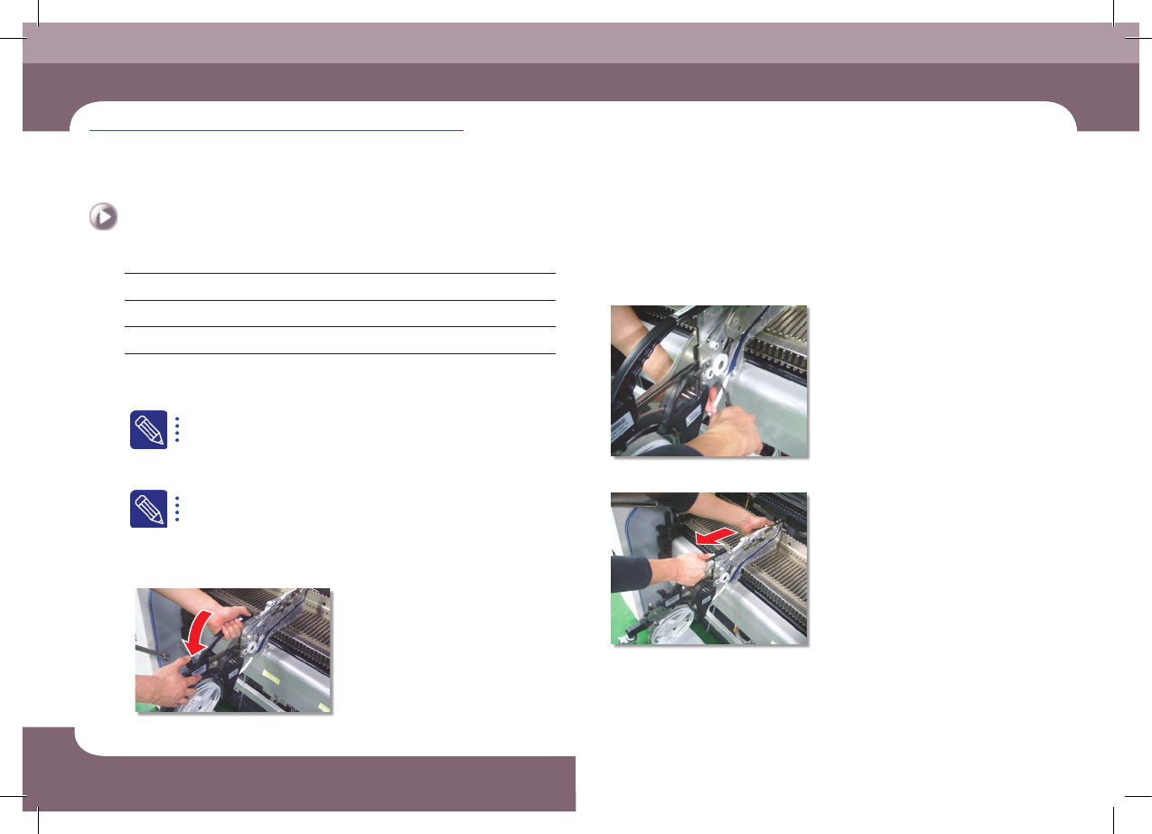 DE CAN S 2 Ma in ten a nc e Ha nd b oo k 3-6 Chap ter 3 每日检查 Advanced Chip Shooter 清扫Feeder及Feeder Base 每日检查 清扫 Feeder 及 Feeder Base 可以防止 Feeder 安装错误及接口的接触不良。 维护工 具 刷子 措施 Step 1. 按下 "F e ed e r Ch a n g e" 使 Fr…