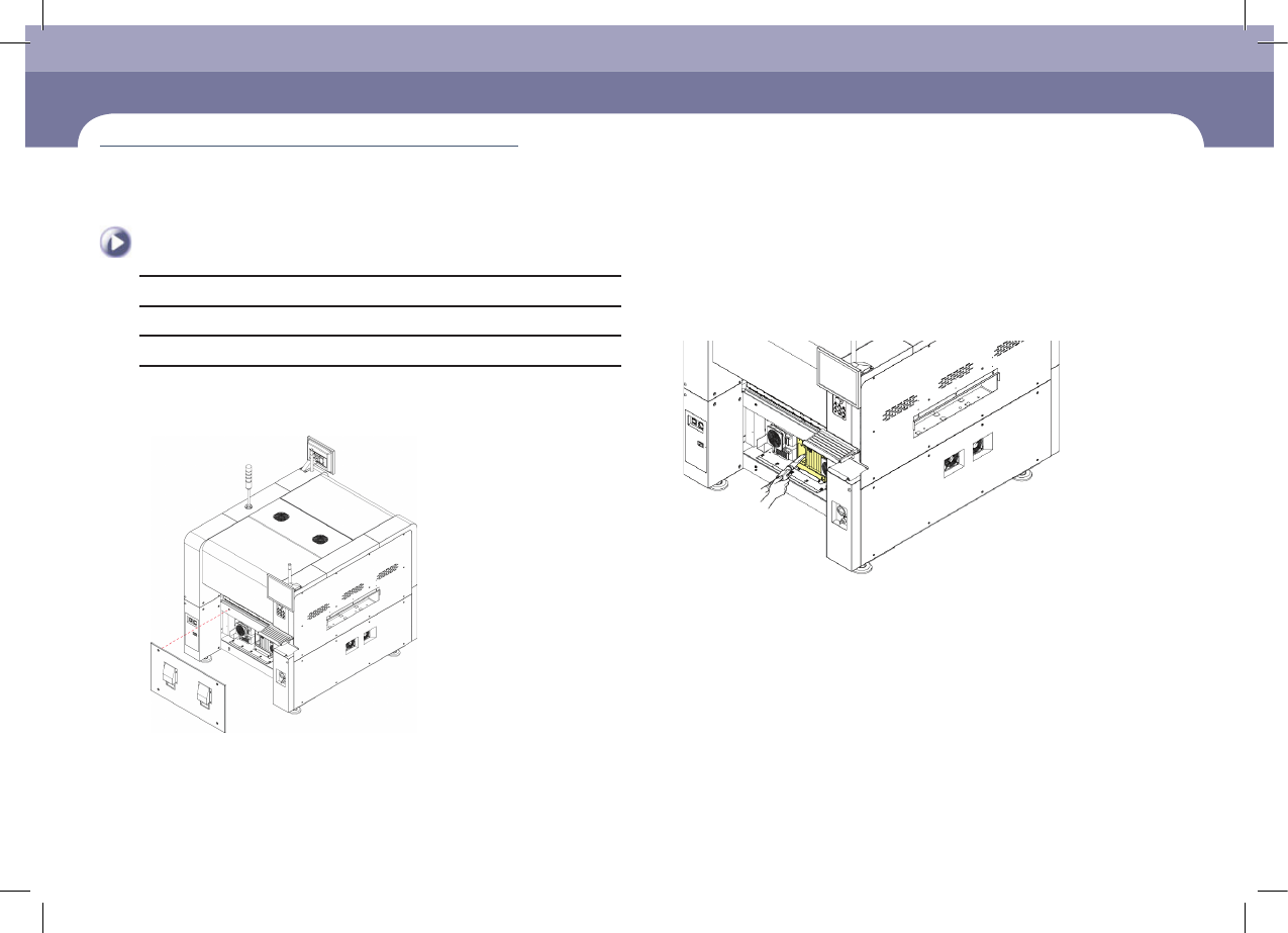 每月检验 Chap ter 5 Advanced Chip Shooter DE CAN S 2 Ma in ten a nc e Ha nd b oo k 5-9 Control Rack Cooling Fan 检查及清扫 维护工 具 扳手、真空清扫器、十字形(+)螺丝刀 措施 Step 1. 参 考 详见 "1. 切断电源步 骤 " ( 第1- 1 页)关闭 设备的电源 Step 2. 利 用 十字(+)起 子…