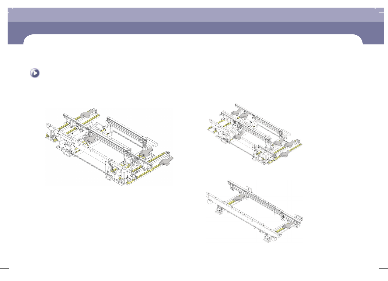 每月检验 Chap ter 5 Advanced Chip Shooter DE CAN S 2 Ma in ten a nc e Ha nd b oo k 5 -2 1 Conveyor Lead Screw,LM Guide清扫及注油及涂抹 Step 4. 使用超细纱 布清除 Wor k Statio n,Exit S tation ,Entry S tation 的 Lead Screw 与 LM Guide Rail 的 灰 尘…