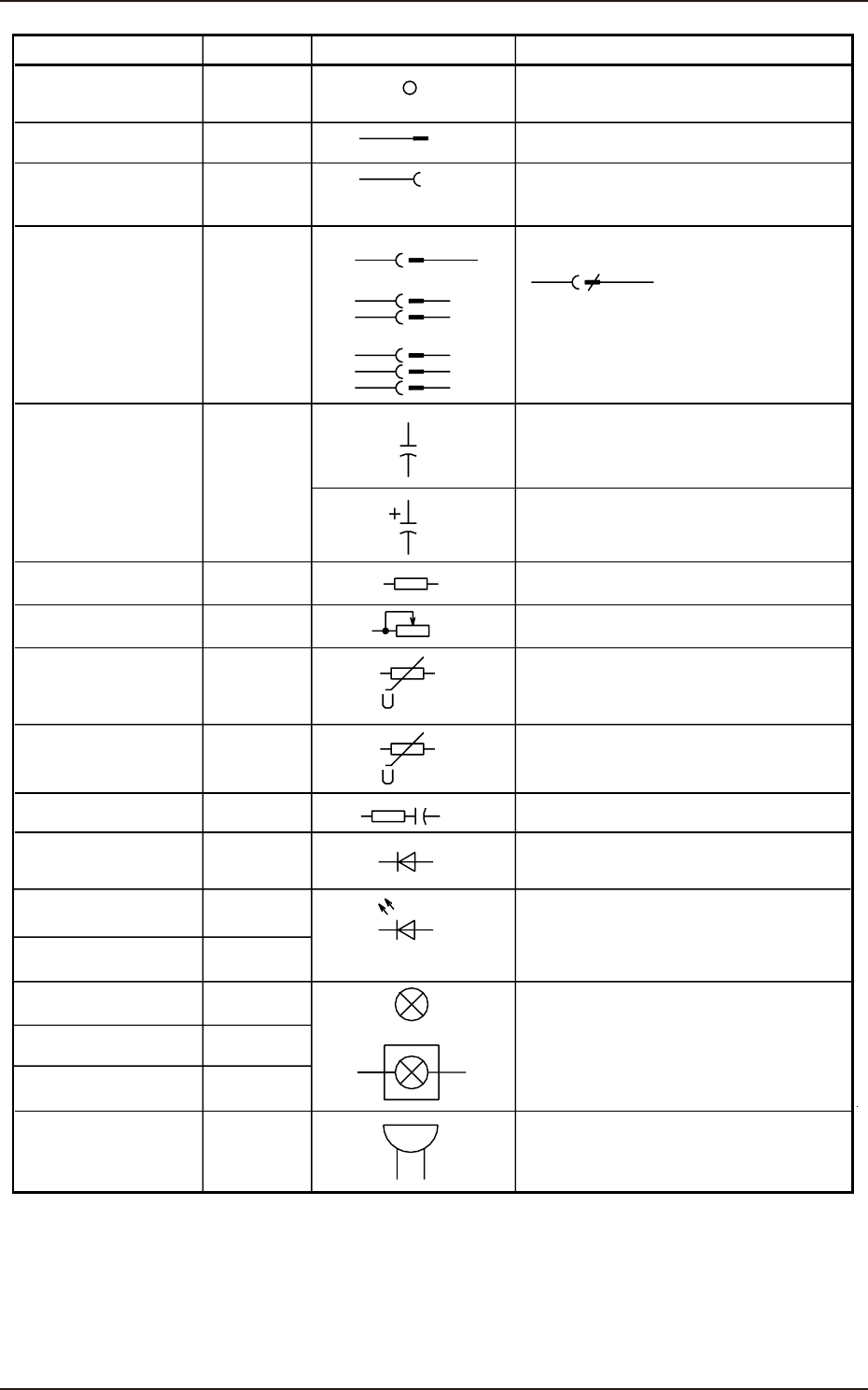 EUKYX 4-2 199-5100 1. Electrical and Electronic Symbols Name T erminal The left figure shows a connector with multi- poles. “n” is the number of poles. X X X X C Polar Capacitor The graphical symbol (light emitting diode…