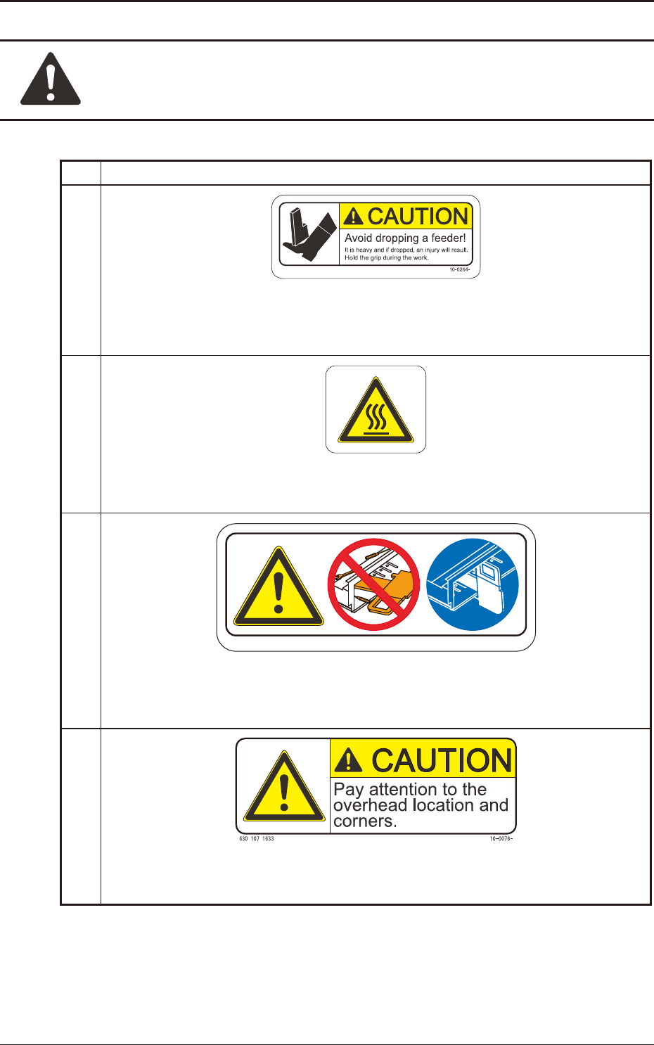 Safety Precautions EUKYX-Safety 199-X100 Safe-28 No. Al er t L ab el s an d De sc rip ti on (13 ) Description ● Do no t dro p a fee de r . O th er w ise, a fo ot inj ur y wi ll res ult o r the fe ed er it se lf may b e d…