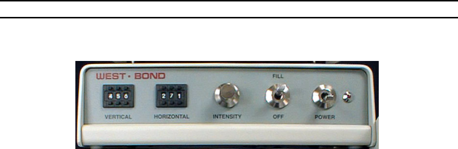 WEST•BOND MODEL 454647E SER IES INSTRUCTION MANUAL 21 MACHINE CONTROLS Crosshair Generator Controls P OWER Activates the Crosshair G enerator. Even if the cro sshairs are not used, this unit must be turned on for the vid…