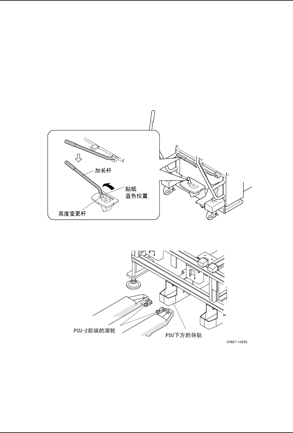 1. 请使用 PCU-2 的加长杆,将高度变更杆设置到蓝色贴纸位置 (左端)。