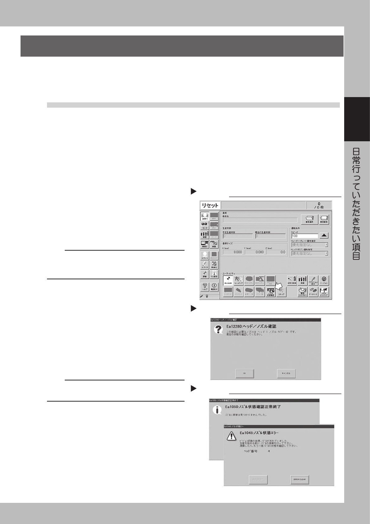 ります。また、ノズルのバフィング動作(スプリング動作)が鈍くなると吸装着エラーの原因となります。こ