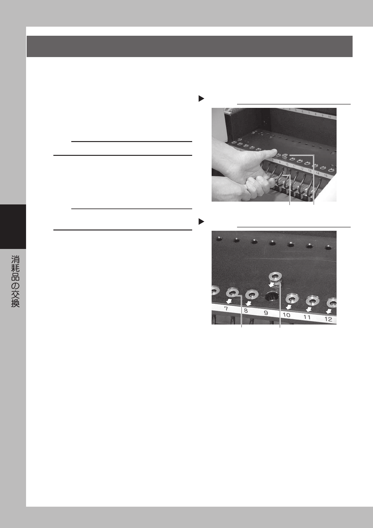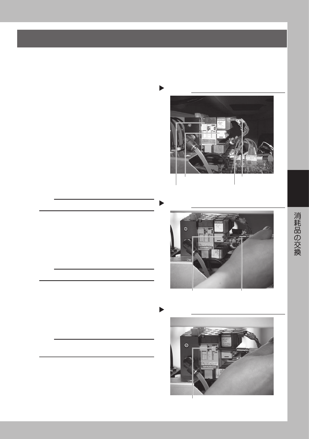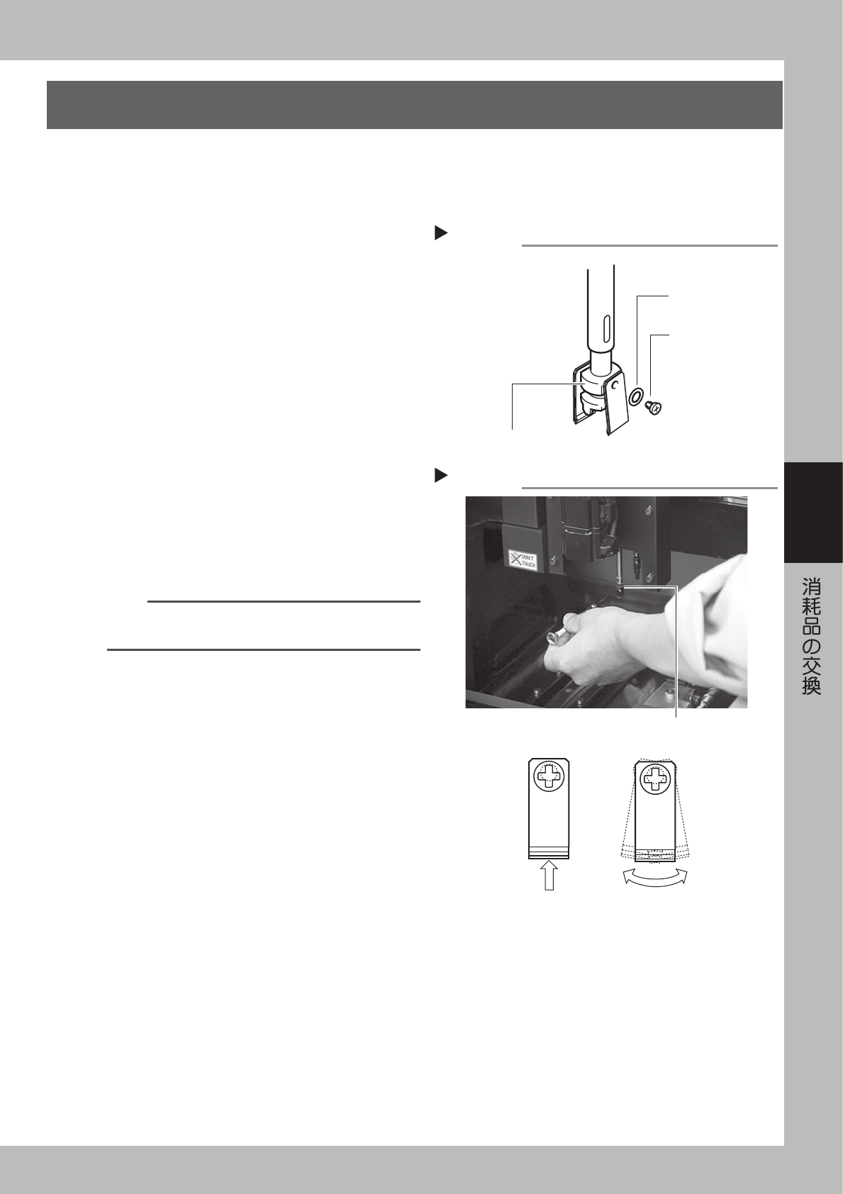 4-2 4 2 . エ ア ジ ョ イ ン ト e 1 非 常 停 止 ボ タ ン を 押 し ま す 。 作 業 を 安 全 に 行 う た め に 、 必 ず マ シ ン を 非 常 停 止 状 態 に し て く だ さ い 。 2 エ ア ジ ョ イ ン ト を 取 り 外 し ま す 。 8 m m 程 度 の 大 き め の 6 角 レ ン チ で フ ィ ー ダ ー プ レ ー ト の 下 か ら エ ア ジ ョ …