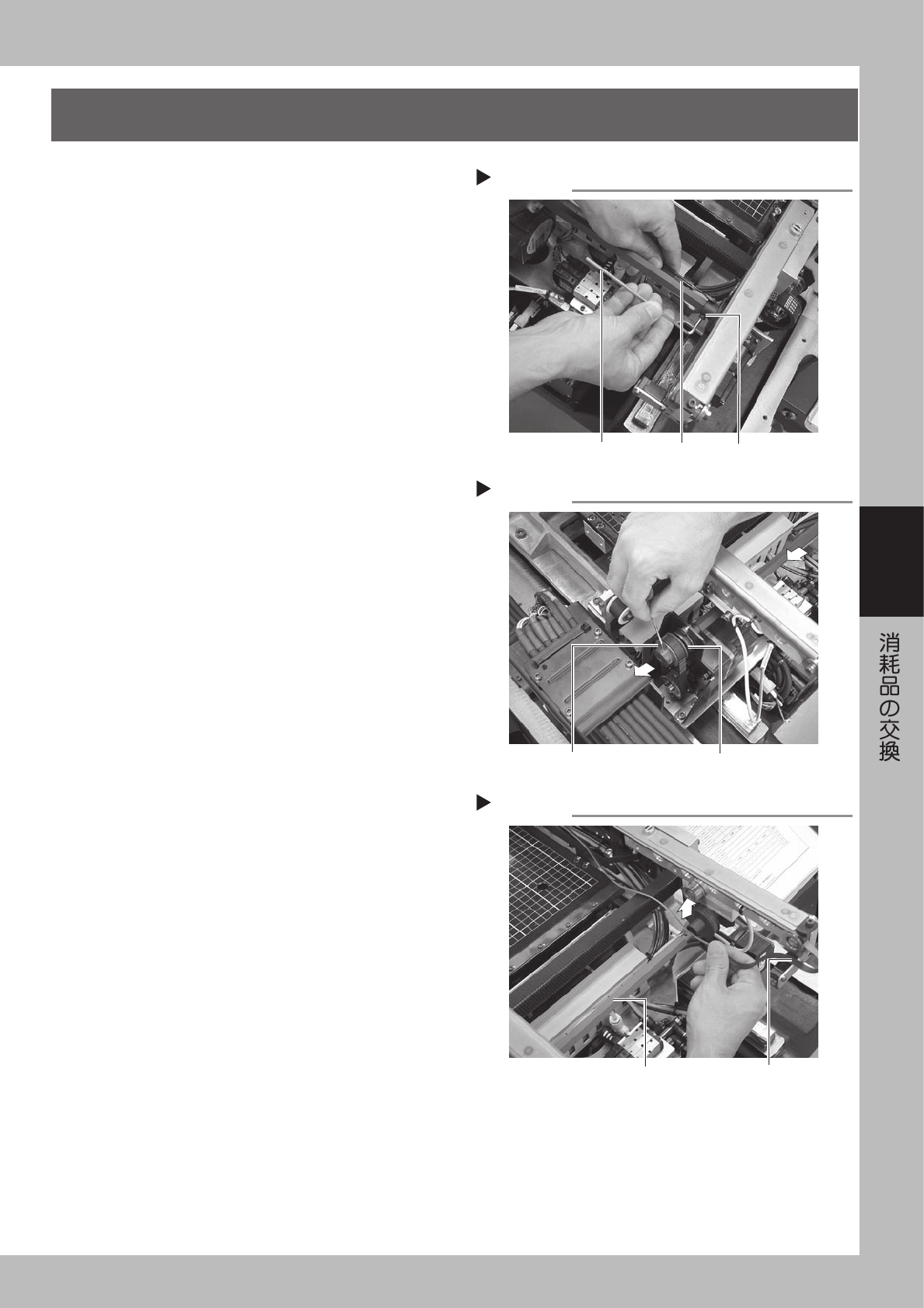 4-5 4 5 . 基 板 搬 送 ベ ル ト e 1 非 常 停 止 ボ タ ン を 押 し ま す 。 作 業 を 安 全 に 行 う た め 、 必 ず マ シ ン を 非 常 停 止 状 態 に し て く だ さ い 。 2 ベ ル ト を 緩 め ま す 。 搬 送 ベ ル ト の テ ン シ ョ ナ ー ボ ル ト に 取 り 外 す 前 の 位 置 を マ ー キ ン グ し て か ら 六 角 レ ン チ で …