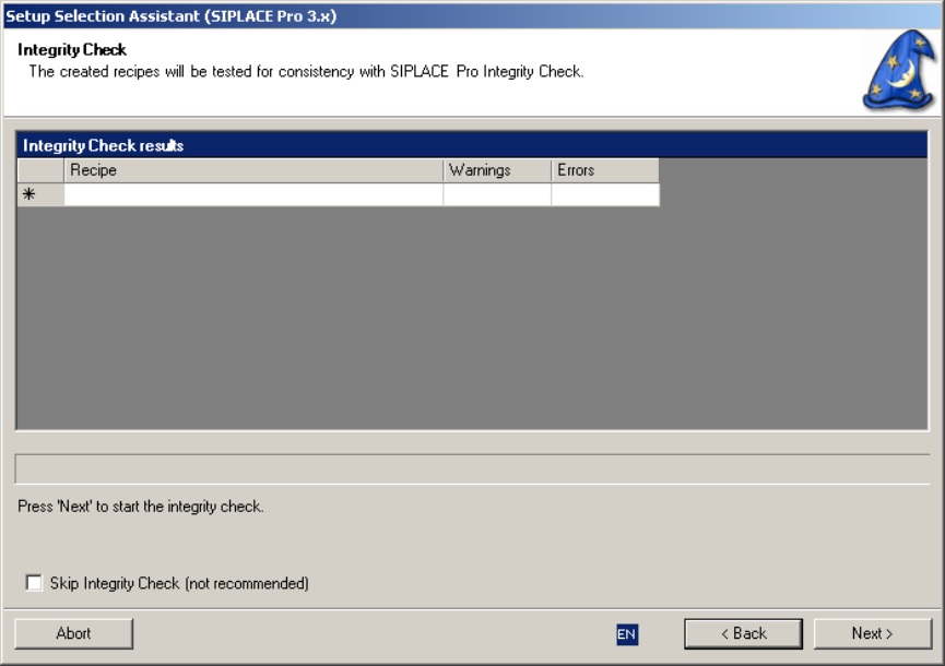 The following step makes sure the recipes are consistent and ready for download to the SIPLACE