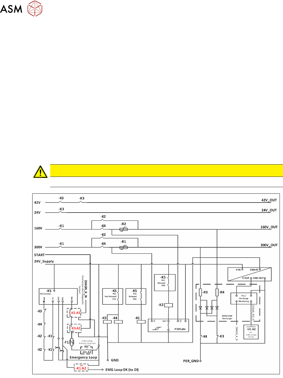 动电路(保护性接触器组合 K5)K1、K3 和 K4 立即激活,24V_S和42V_S打开输出,启动 300V 和
