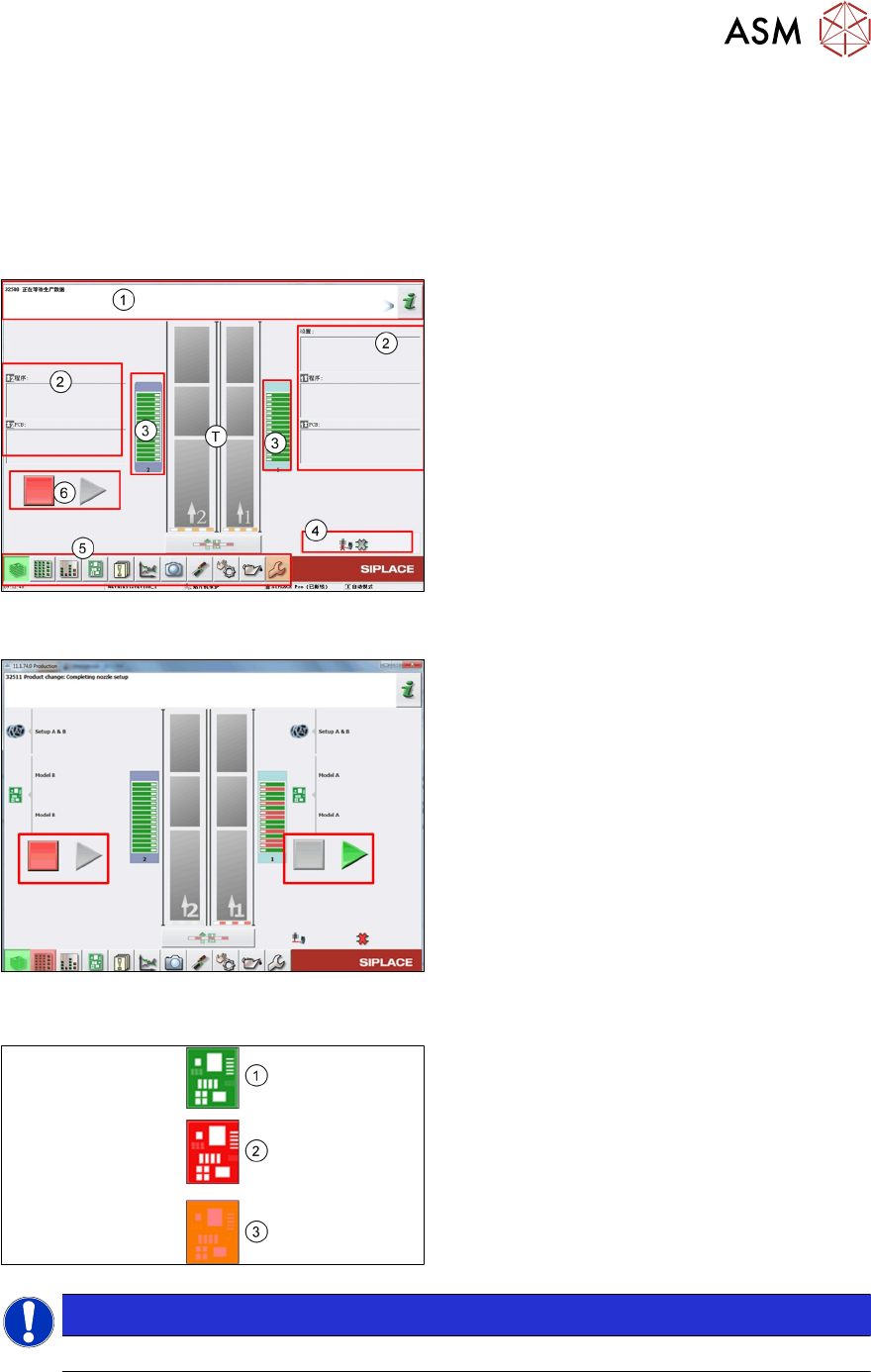 9 贴片机软件概览 9.1 贴片机软件启动页面概览 技术培训 FSE SIPLACE TX系列 08/2018 149 9 贴片机软件概览 9.1 贴片机软件启动页面概览 工作站 GUI 总览 < 710 T 型贴片机传送导轨 1. 信息/动作栏,贴片机状态 2. 传板 1 和 2 的产品和设置信息 3. 供料器板状态 4. 贴片机选项和设置信息 5. 贴片机主要图标 6. Start/Stop(启动/停止)按钮 工作站 GUI …