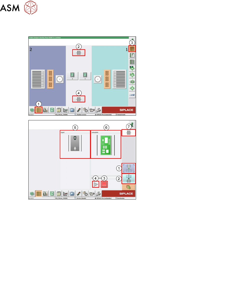 9 贴片机软件概览 9.9 贴片机 GUI 移载机扩展部件 170 技术培训 FSE SIPLACE TX系列 08/2018 9.9 贴片机 GUI 移载机扩展部件 1. 单击 Setup 菜单。 2. 选择输出传送导轨上的 SIPLACE 移载机扩 展部件。 3. 单击 Location 菜单。 4. 选择输入传送导轨上的 SIPLACE 移载机扩 展部件。 1. 选择输出传送导轨上的 SIPLACE 移载机扩 展部件 2. 选择输…