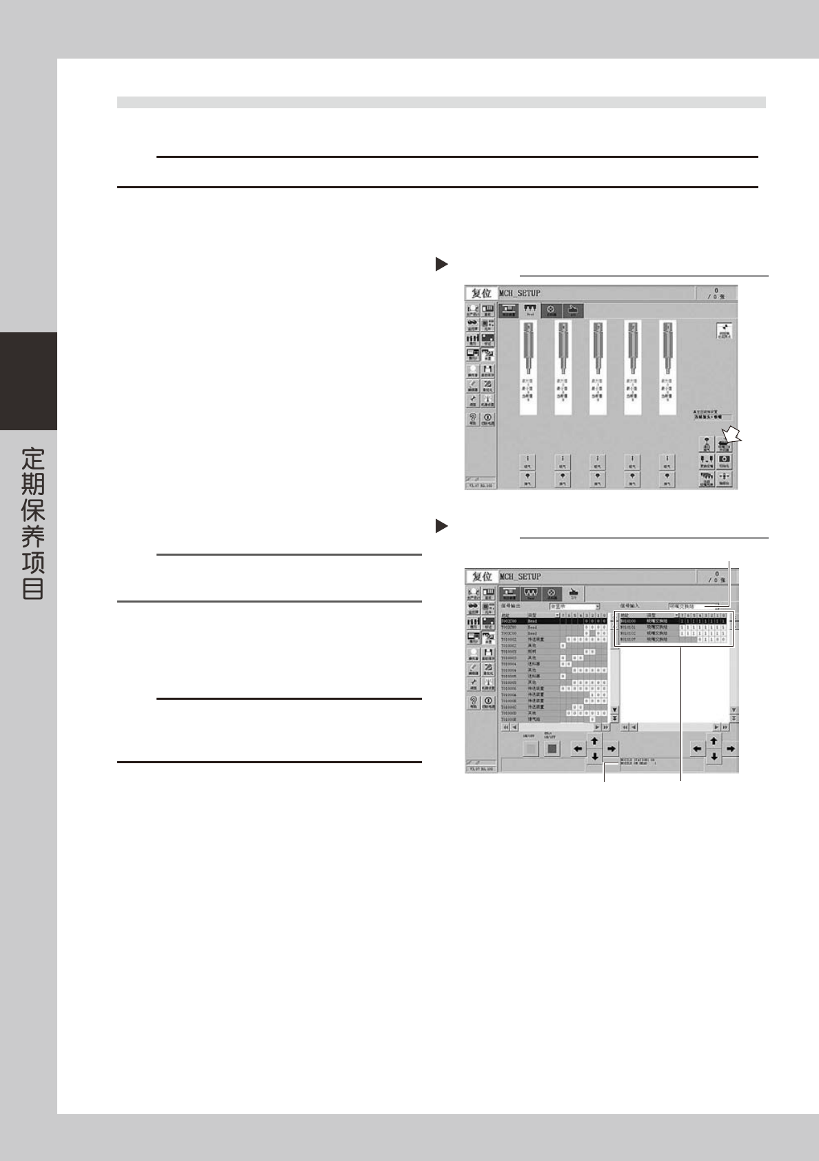 3-30 3 4.4 吸嘴交换站传感器状态的确认 (1 年 )--- 选配 配备吸嘴交换站 ( 选配 ) 的贴片机,必须确认吸嘴交换站传感器的状态。 c 注意 吸嘴交换站传感器无法正常检出吸嘴时,可能导致无法正常进行吸嘴交换或因检出吸嘴错误而使机器无法继续运行。 e 1 按紧急停机按钮。 为安全作业,务必使贴片机处于紧急停机状态。 2 打开吸嘴交换站的开闭器。 1. 按 [ 装置 ] 按钮,打开「Head」选项卡。 2. 按 [ 吸嘴…