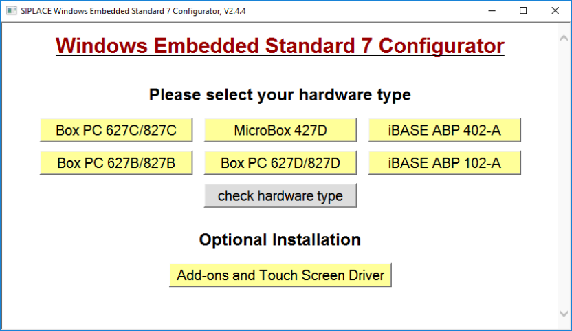 Figure 4-6: Window "SIPLACE Windows Embedded Standard 7 Configurator"
