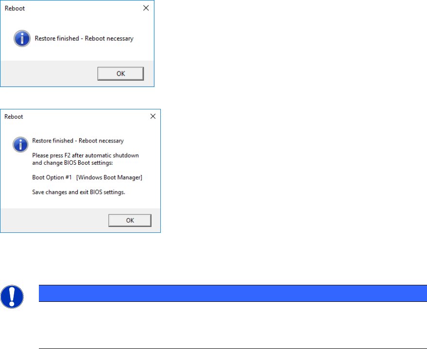 Abbildung 4-3: Abschlussmeldung unter Win10 bei iBASE-Rechnern