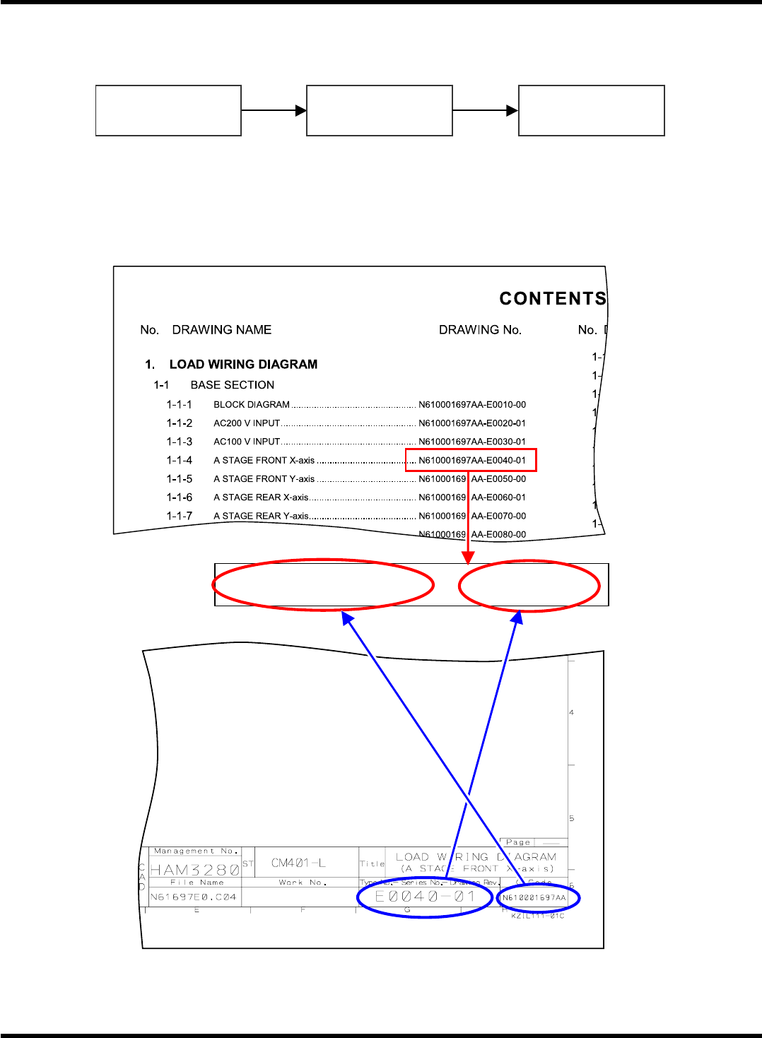1. Search for the wiring diagram by the drawing No. in the table of contents.