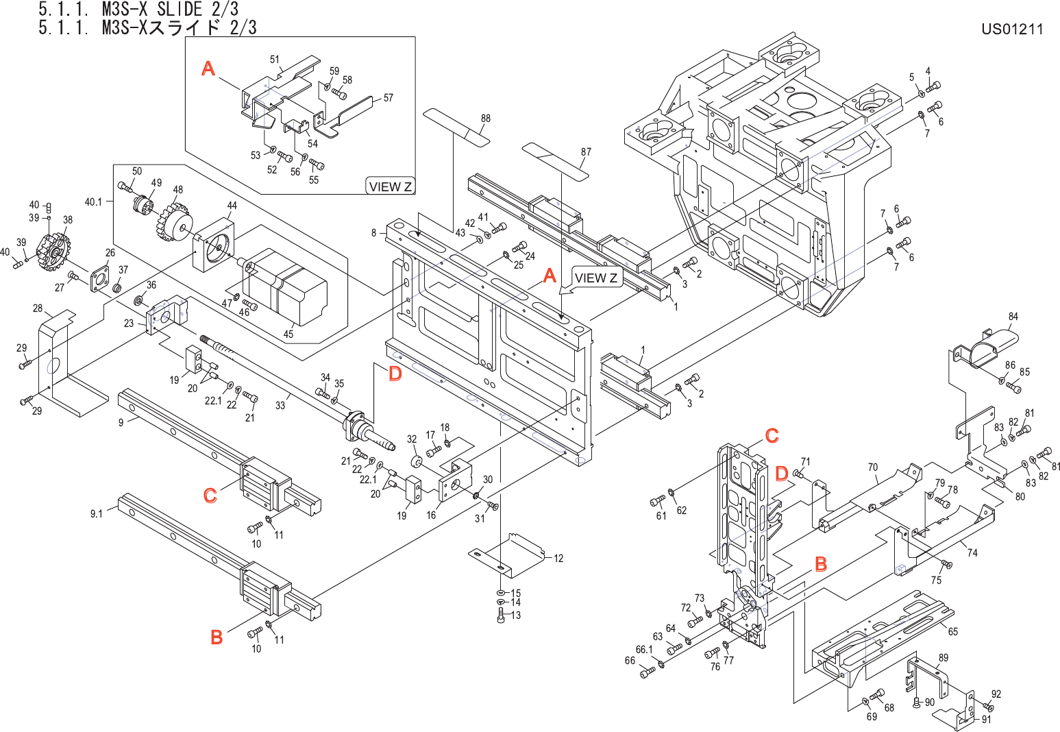 5.1.1. M3S-X SLIDE 2/3 5.1.1. M3S-Xスライド 2/3 US01211 No. Drg.No. & Code No. QTY Description Rating Materials Remarks 番号 図番 & コード番号 個 数 品名 規格 材質 備考 1 XG00422 2 GUIDE, RAIL ガイド レール OT 2 H5291A 10 BOLT, HEX SOCKET ボ…