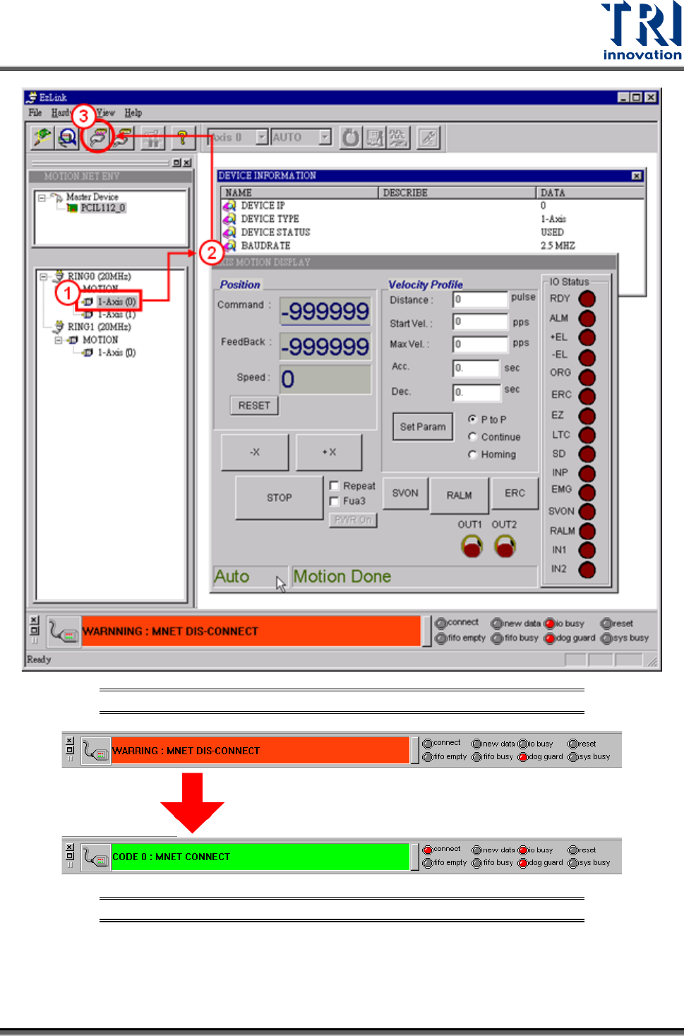 Figure 117: EzLink Disconnect/Connect Status Screen
