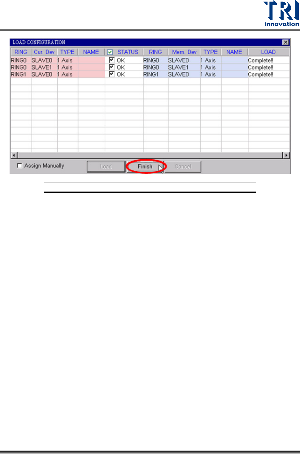 D. Once all slave devices have been loaded successfully, click on the FINISH button to