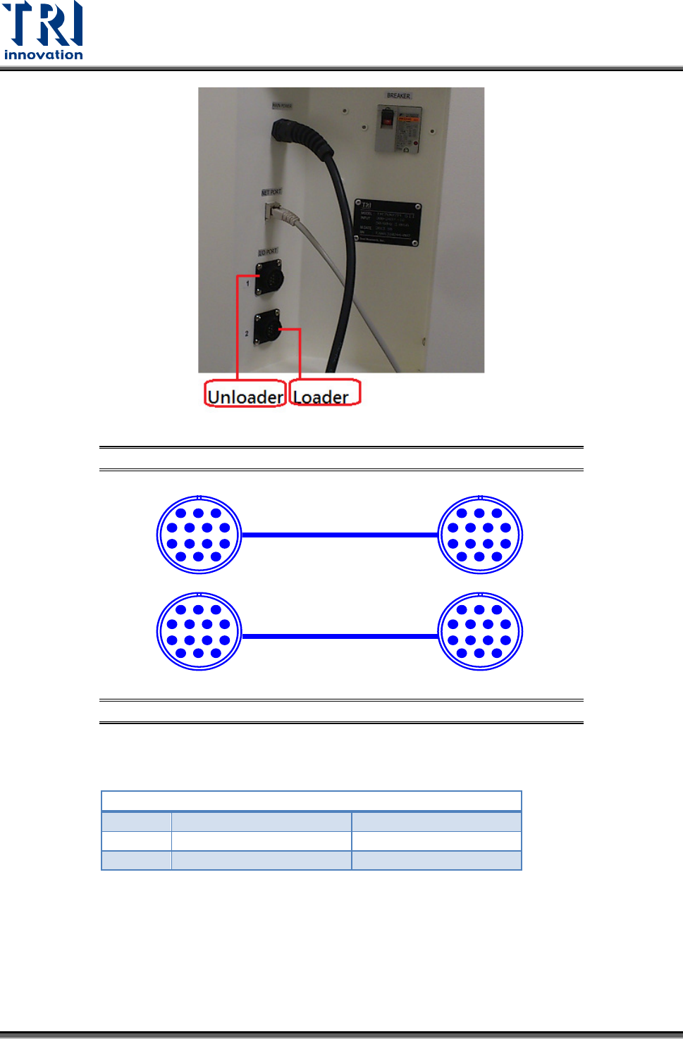 Test Research, Inc. 34 TR7007 M SII User Guide – Hardware Figure 83 : Loader and Unloader Socket Positi on Figure 84 : Loader and Unloader Cabl e 4.3.2 Unloader Connection PO RT2 – DOWN LINE X98 Black (1) / G reen (2) Re…