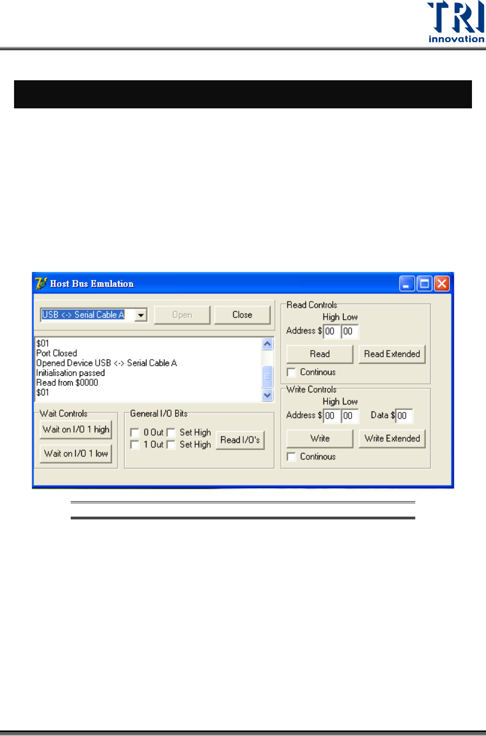 Execute the test software FT2232C TEST TOOL\HostEmul.EXE.