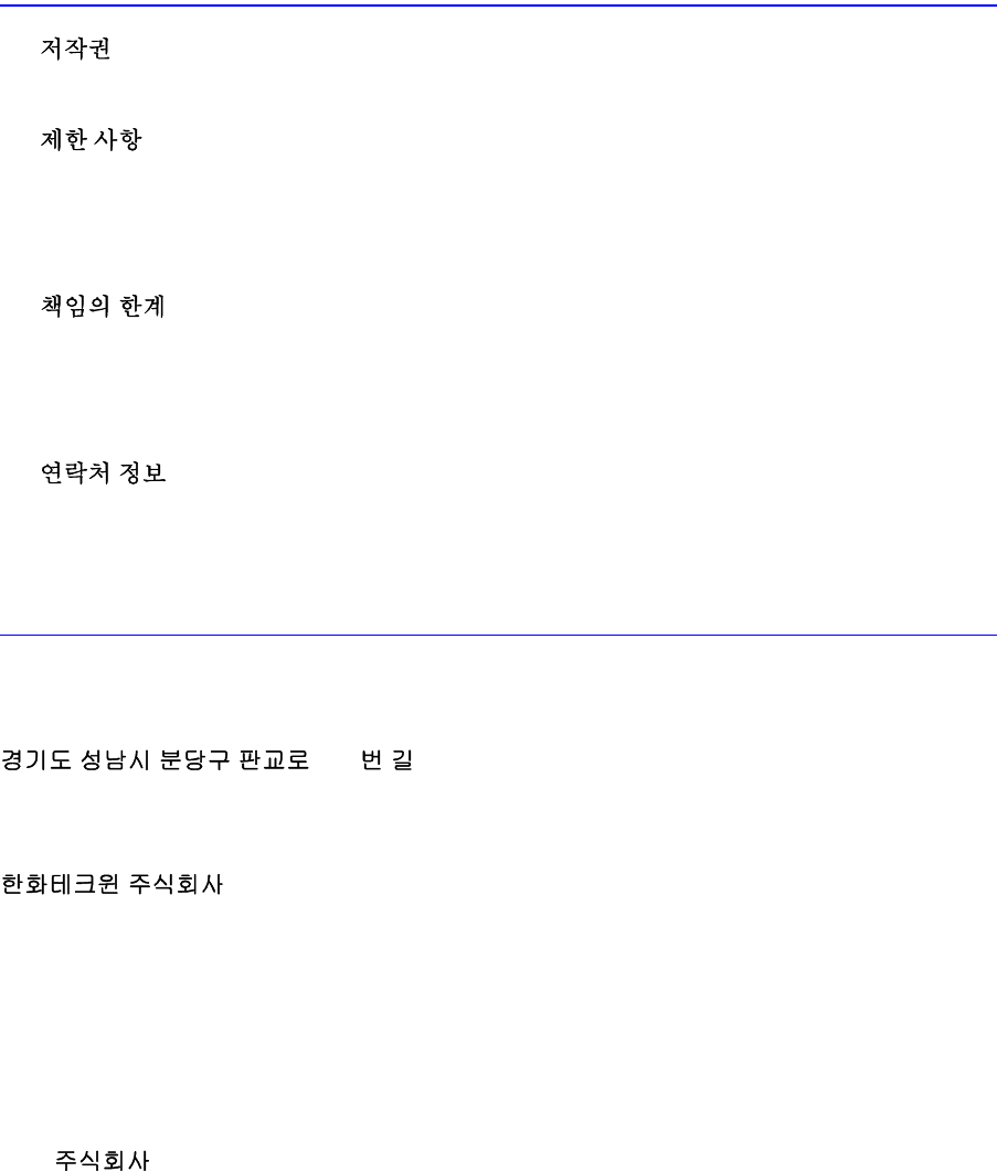 본 매뉴얼의 저작권은 한화테크윈㈜에게 있습니다. 한화테크윈 주식회사의 공식 승인 없이