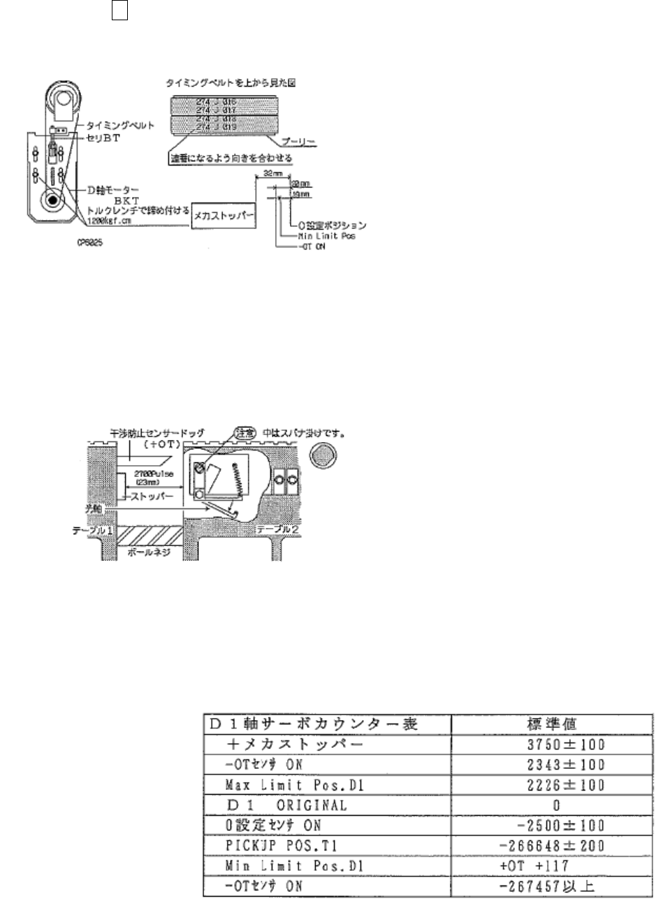 Timing belt 因 1 齿约有 127pulse 的变化,设置在 3750±63pulse(D2-2750±63pulse)。(D1 轴 belt