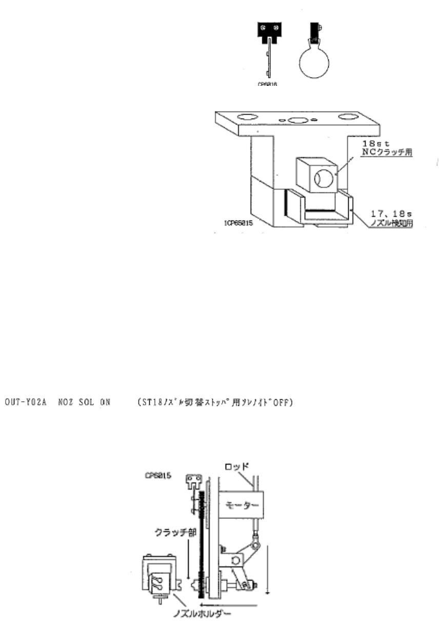 . 芯取出后的 Nozzle holder 向 17~18st CAM 角度 0 度上移动、使 Nozzle change Clutch 上下的 Solenoid