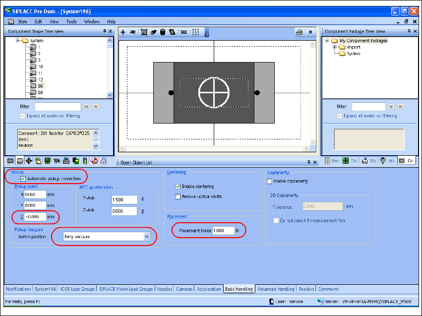 Fig. 37 SIPLACE Pro "component shape editor" - "basic handling" tab