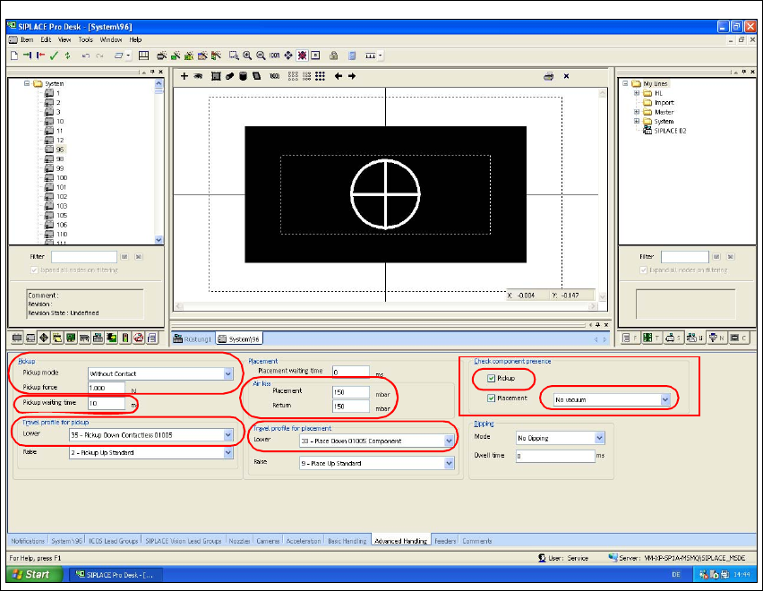 Æ Go to "Waiting time during pickup" and enter the value 10 ms (only for C&P 12 head).