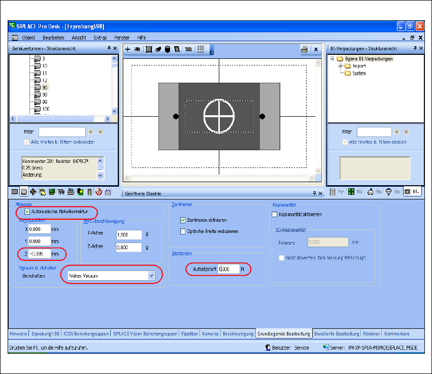 Æ Tragen Sie unter "Bestücken" die "Aufsetzkraft" 1,0 N ein.
