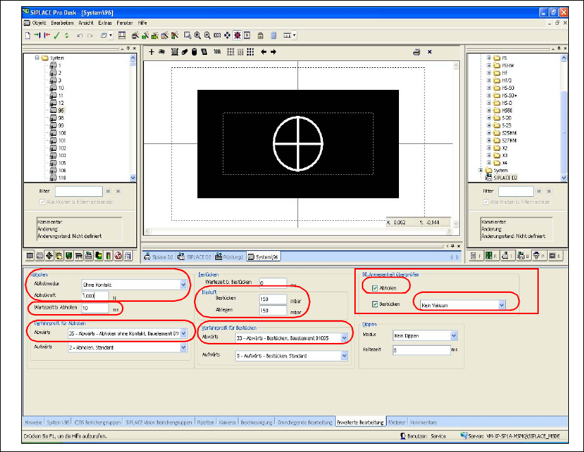 Æ Tragen Sie unter "Bestücken" die "Aufsetzkraft" 1,0 N ein.
