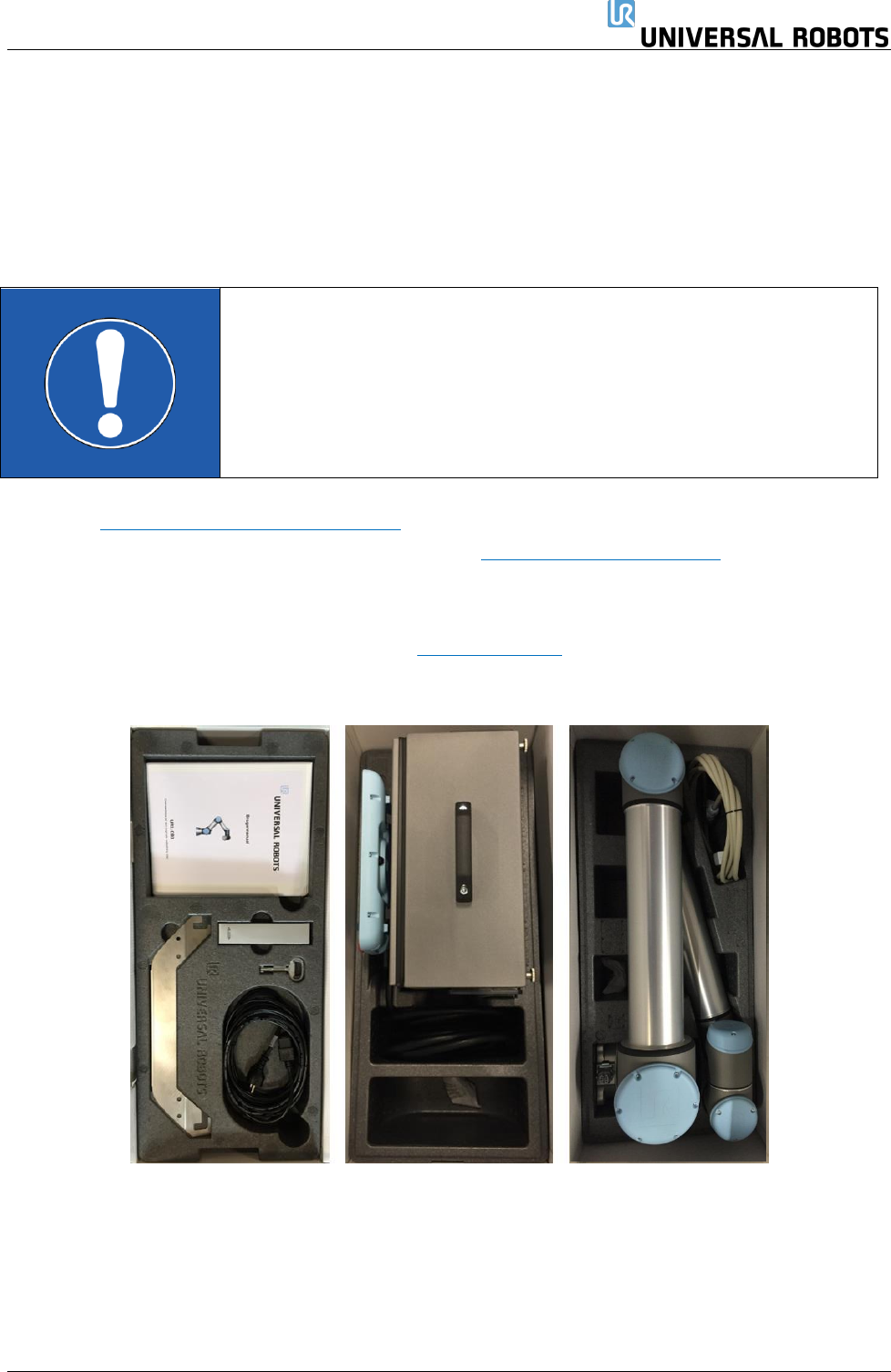 www.universal-robots.com/support/下载有关机器人类型和包装材料的正确装箱程序。