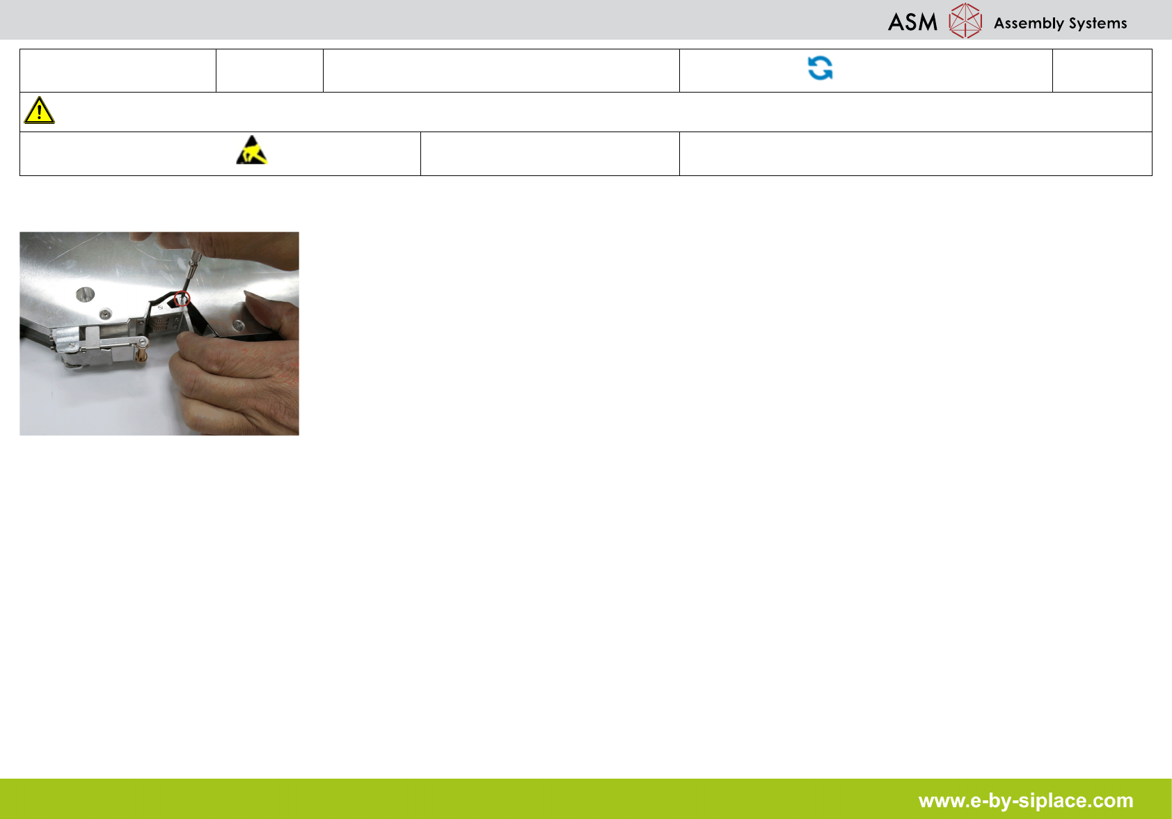 E-by SIPLACE Smart Feeder 24 mm E Fitting the Stripping Device Foil Disposal Part Exchange 8/8 CAUTION! Refer to safety inst ructions in user manual before working on the machine. ESD guidelines are to be followed Tool: …