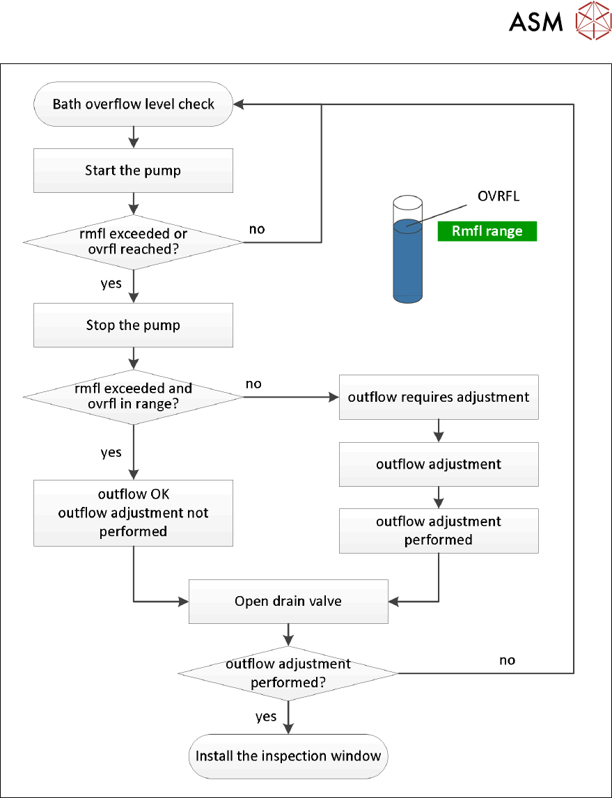 ► If the overflow level is not reached or the maximal fluid level is not the range the overflow level