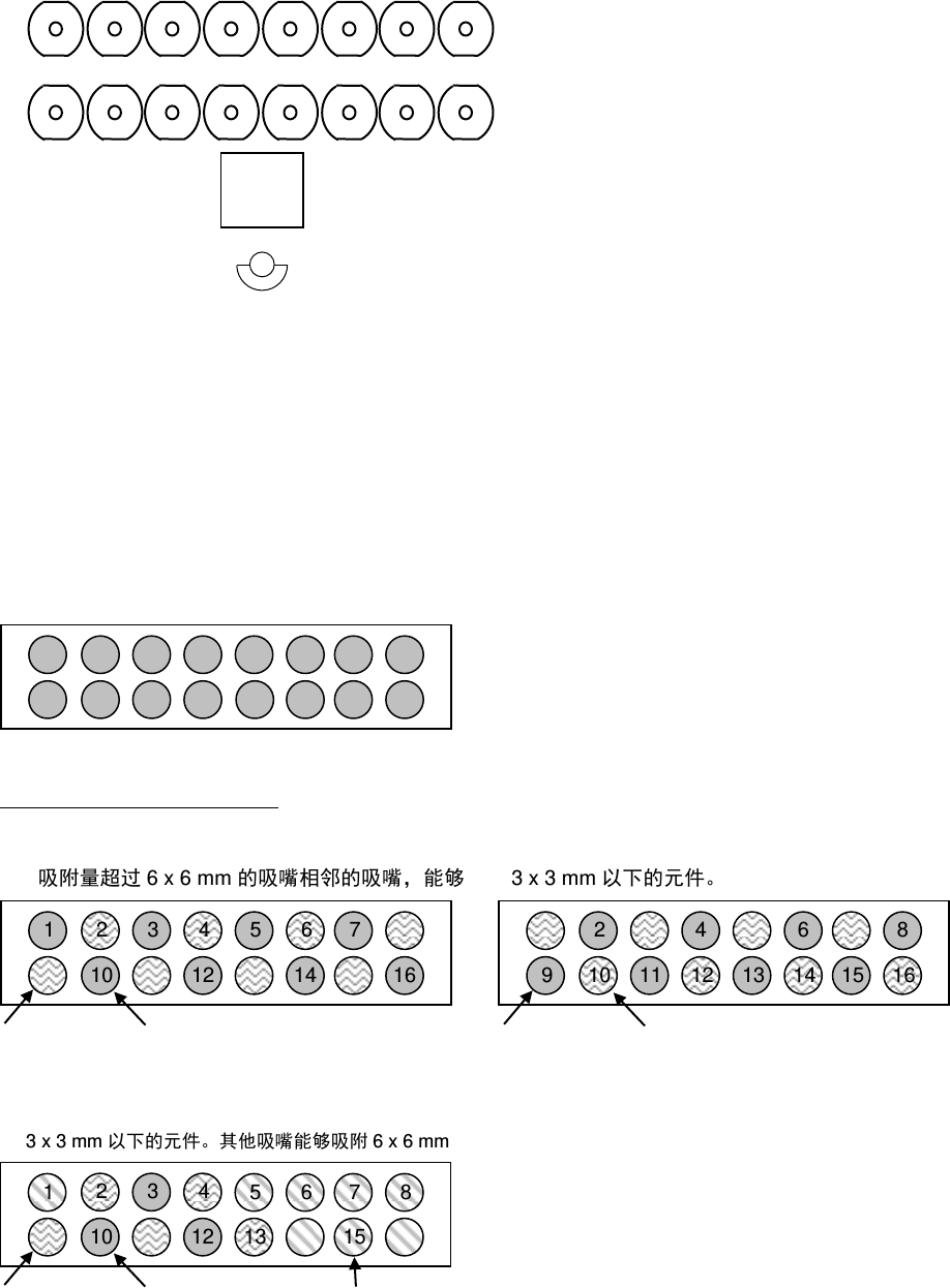 同一圈最多可吸附 8 6 x 6 mm 以上的元件,该情况下有 2 交错排列配置,如下所示。